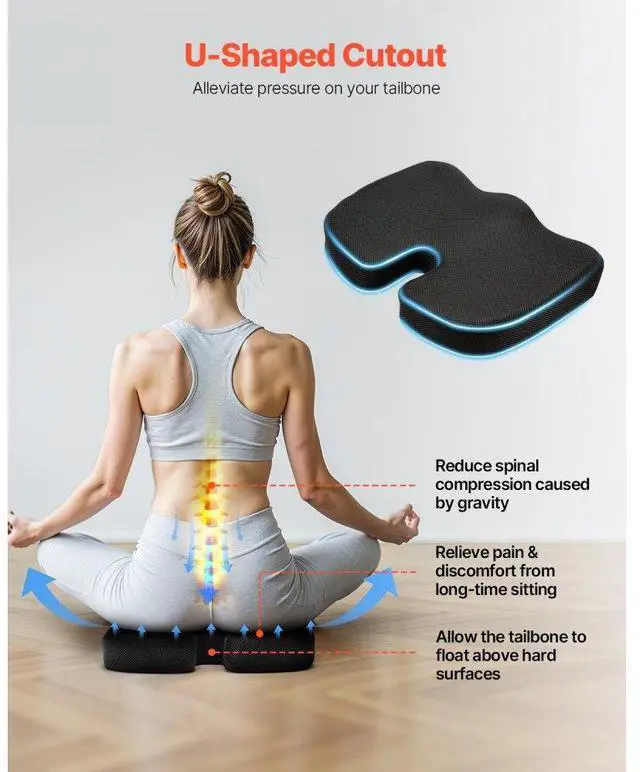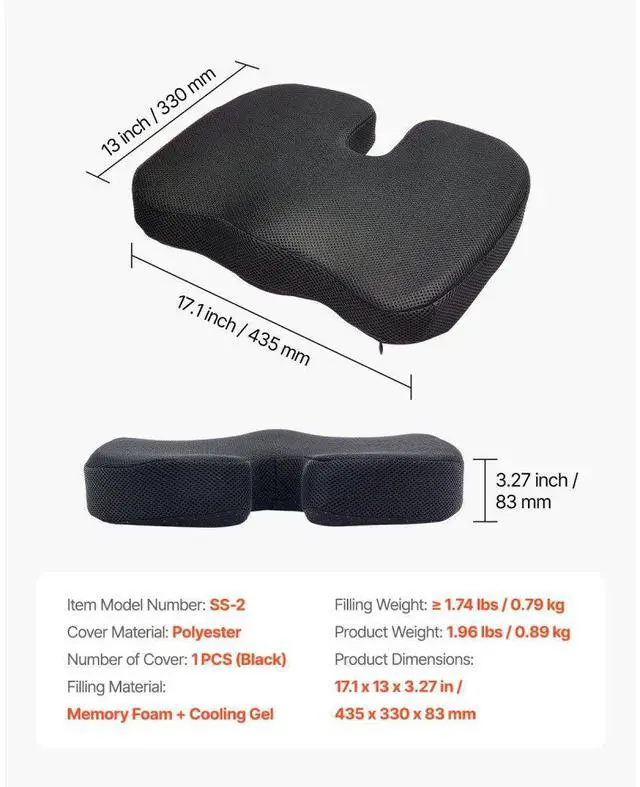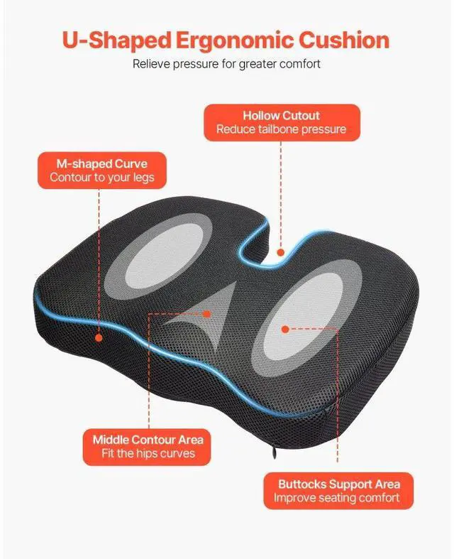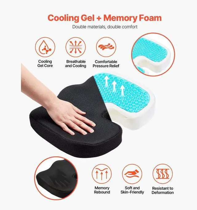 VEVOR Seat Cushion Cooling Gel & Memory Foam Seat Cushion for Pressure Relief Ergonomic Designs All-Around Pressure Relief Say Goodbye to Fatigue Removable and Washable Cover Easy to Store and Carry