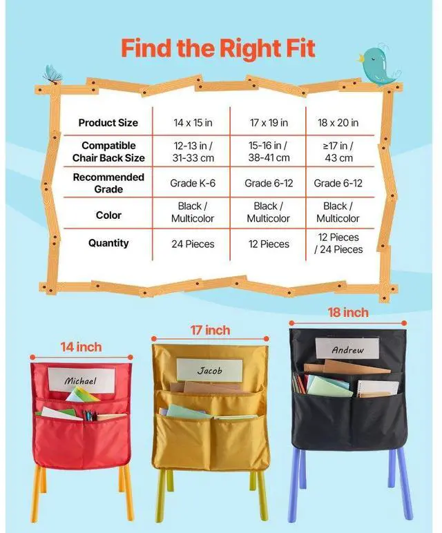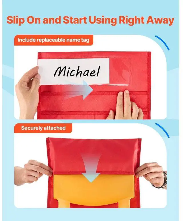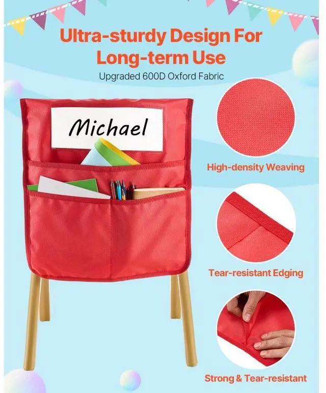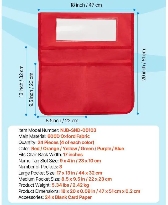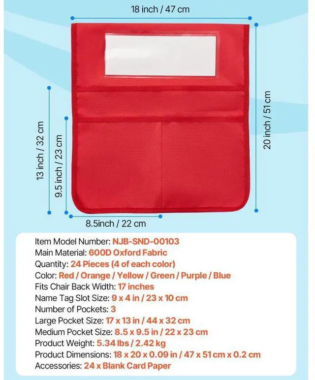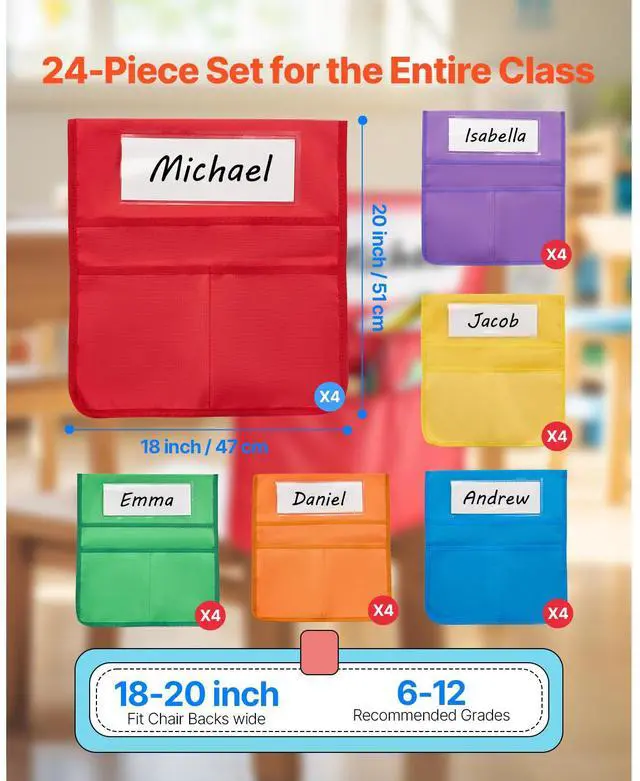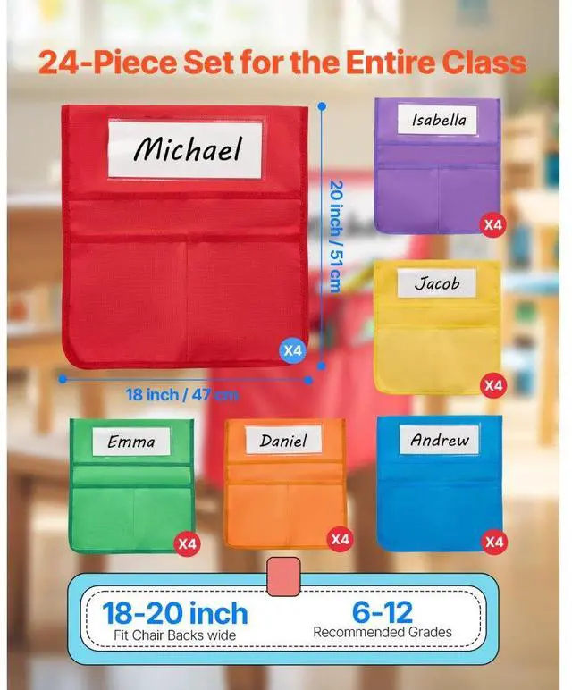 VEVOR Chair Pockets for Classroom 24 Pack Seat Pocket with Name Tag 6 Colors Organized Learning Easy Access Durable Design Personalized Tags Versatile & Simple Easy to Clean Medium