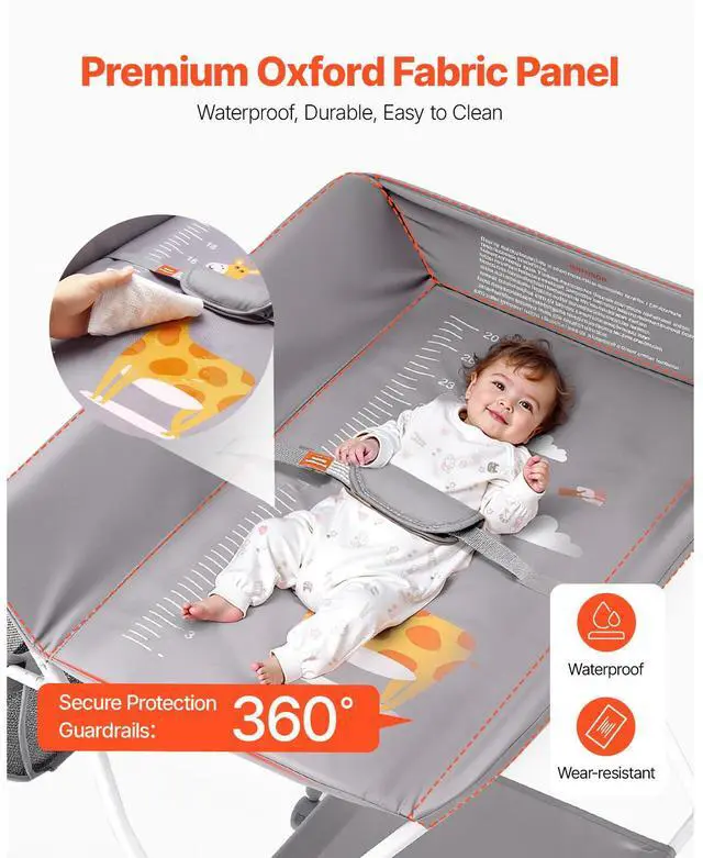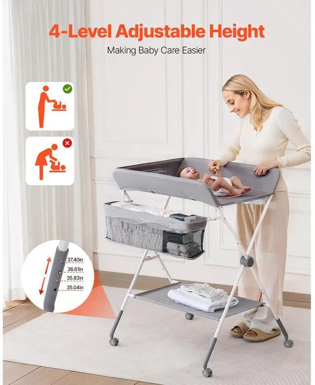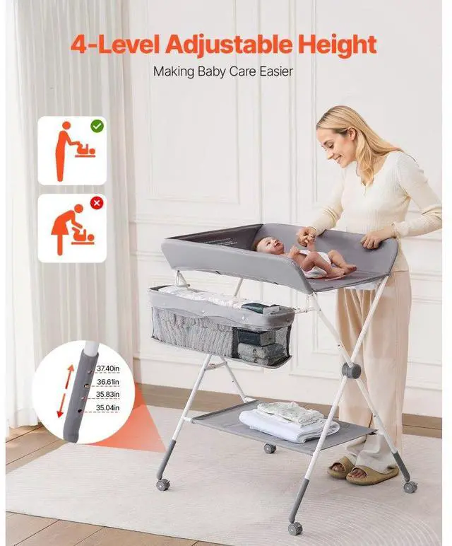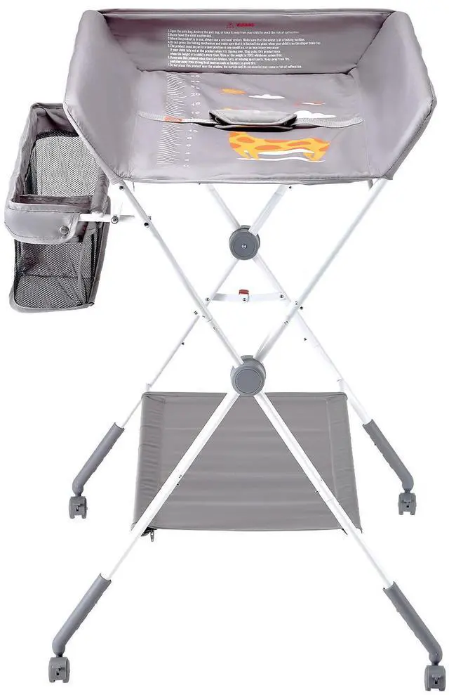 Foldable Baby Changing Diaper Station with Side Basket & Wheels Light Gray Portable Folding Design Spacious Storage Reliable Quality Multi-Function Design 360° Security