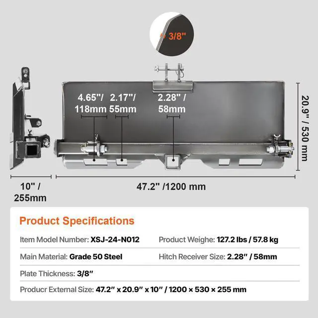 Product Weight: 127.2 lbs/ 57.8 kg, Receiver: 2.28",
