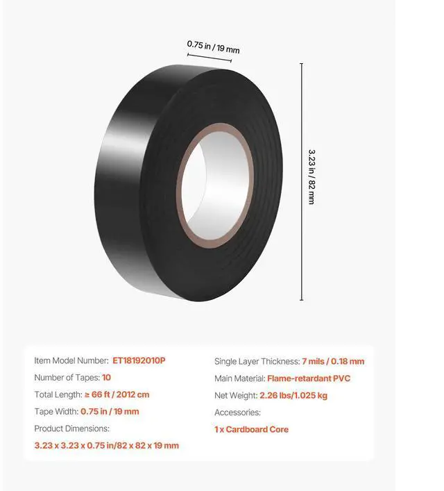 10 Rolls Electrical Tape PVC Insulating Tamp Adhesive Wire 3/4 in x 66 ft Black Electrical Tape Set Premium Quality Built for All Weather Convenient to Use Multi-Purpose Application Portable and