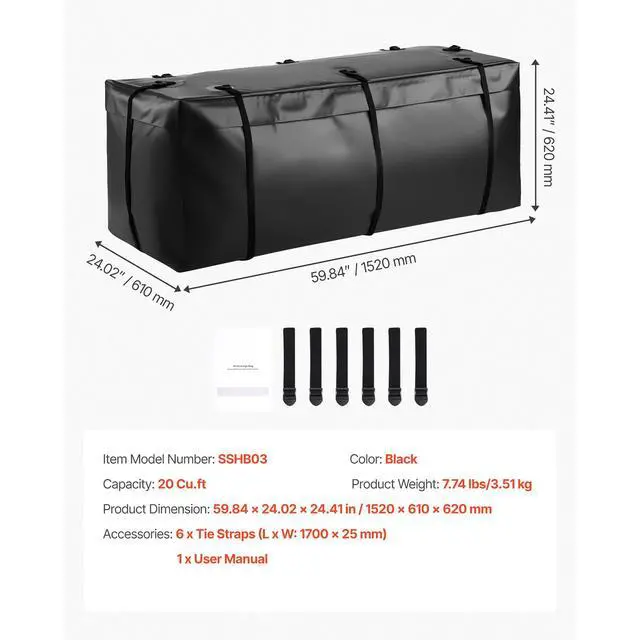 • Hitch Cargo Carrier Bag 59.84 x 24.02 x 24.41 in (20 Cubic Feet) Waterproof