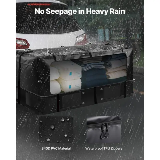 Hitch Cargo Carrier Bag 59.84 x 23.9 x 24.02 in (20 Cu. ft) with 8 Straps Extra Large Capacity Fully Waterproof Design Secure Attachment Lightweight and Portable Tear-Resistant & Durable Wide