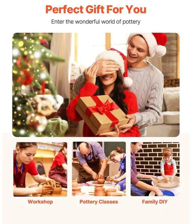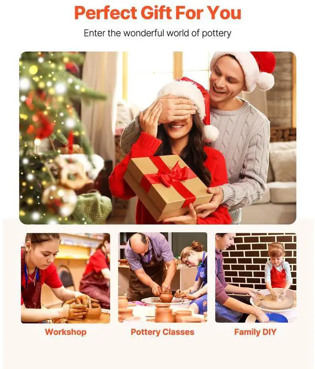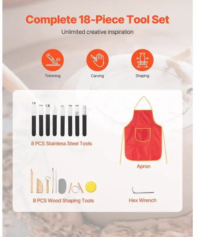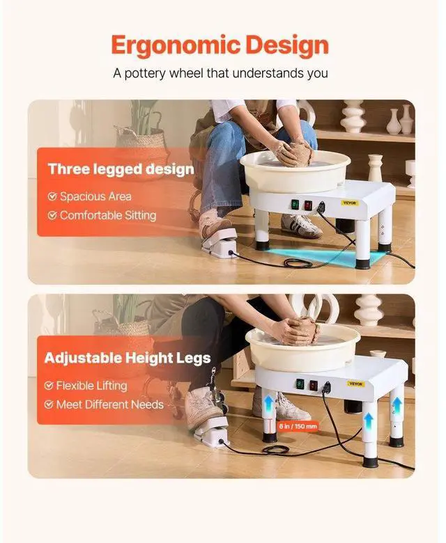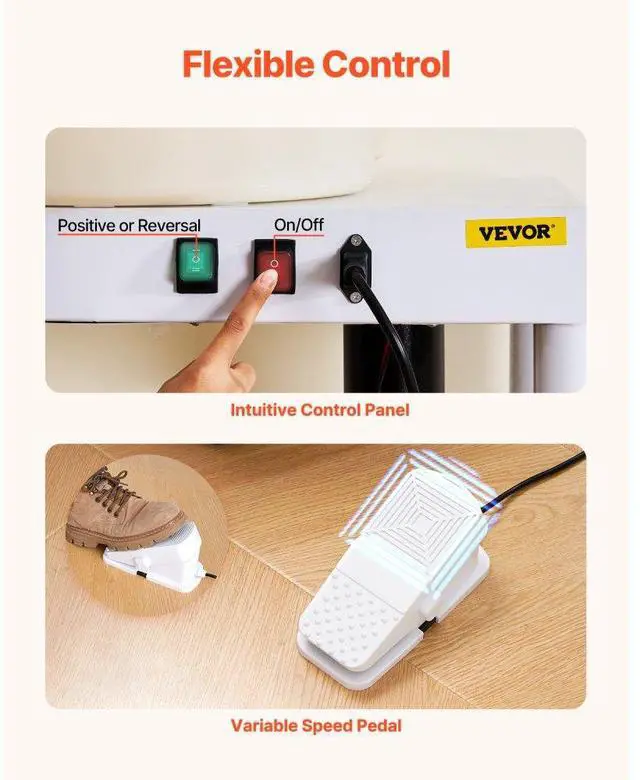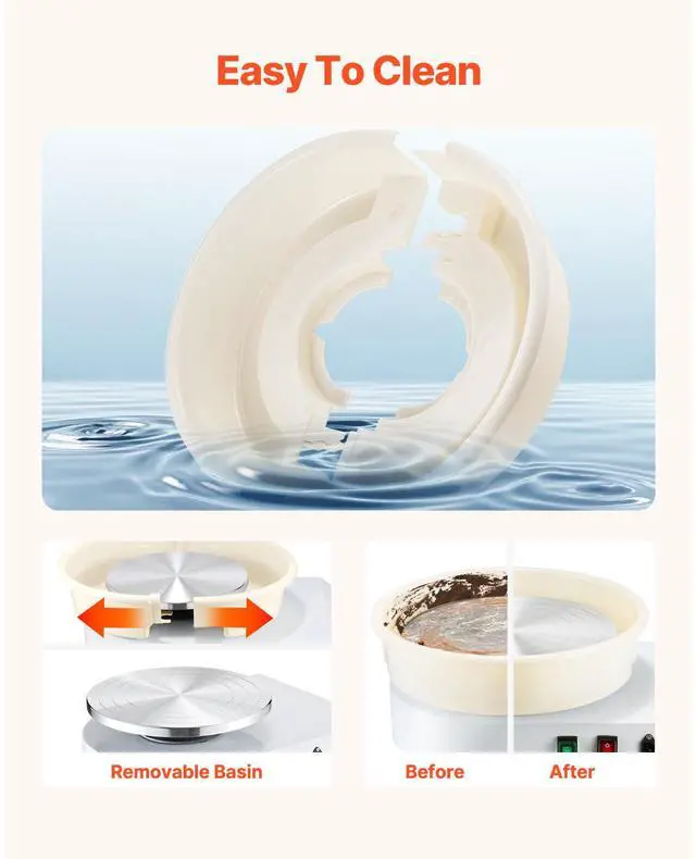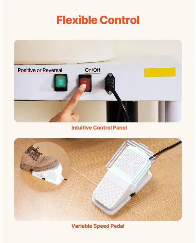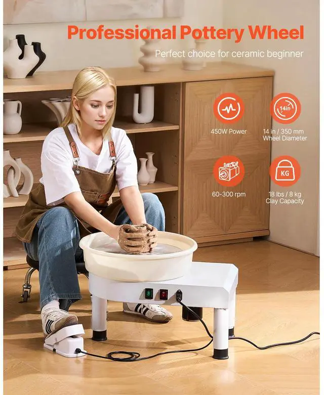 Pottery Wheel 14 in Ceramic Wheel Machine 60-300 RPM Speed Adjustable White Large Wheel & Detachable Basin Intuitive Panel Foot Pedal Adjustment Adjustable Legs Security Protection Full Ceramic Tools Speed: 60-300 r/min,