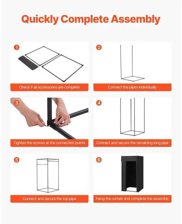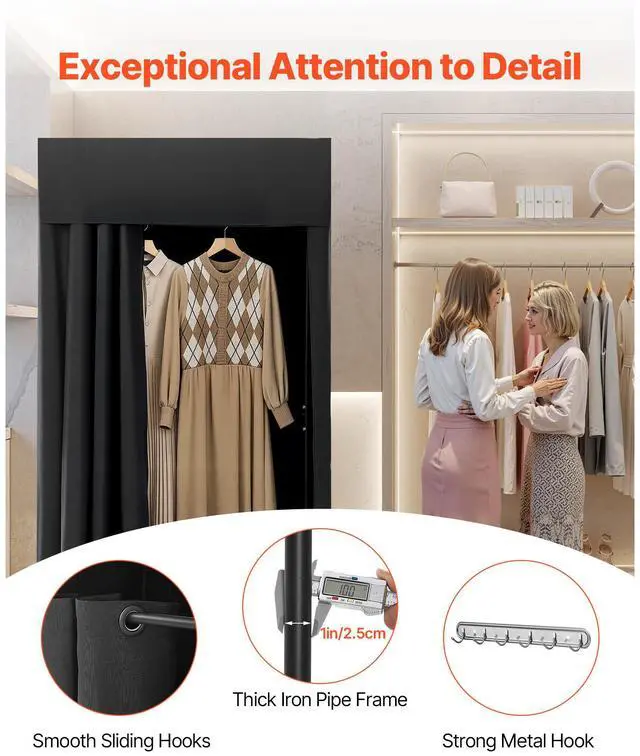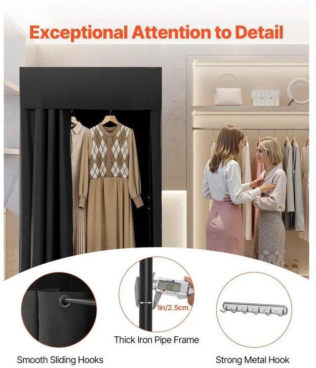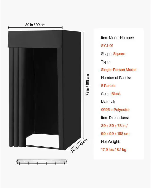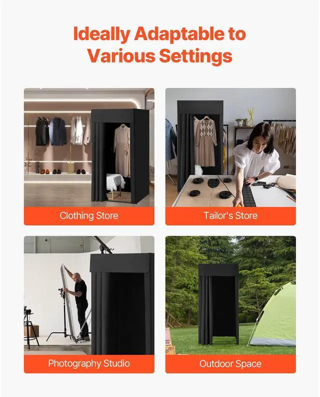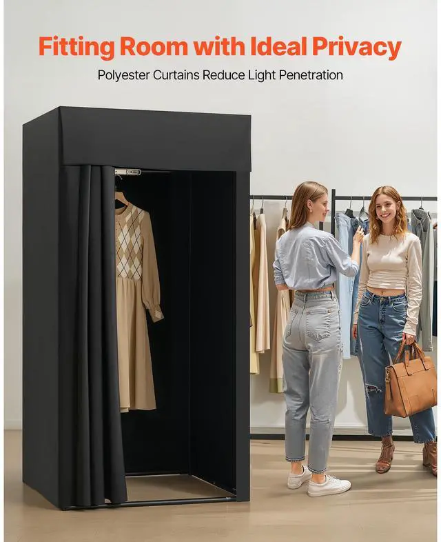 VEVOR Fitting Room, Portable Dressing Room with Thick Polyester Curtains, Privacy Space with Shading Curtain and a Hook, for Boutique, Mall, Tailor's Store & Outdoor Activity 39 x 39 x 78 in (Black) Privacy-Protected Fitting Room Light-Blocking Fabric Thoughtful details Wide application Easy assembly Thoughtful details