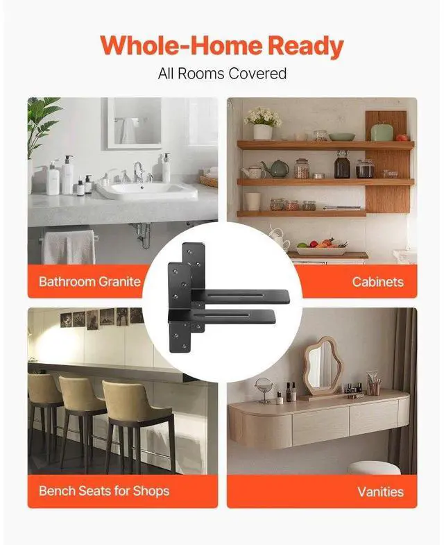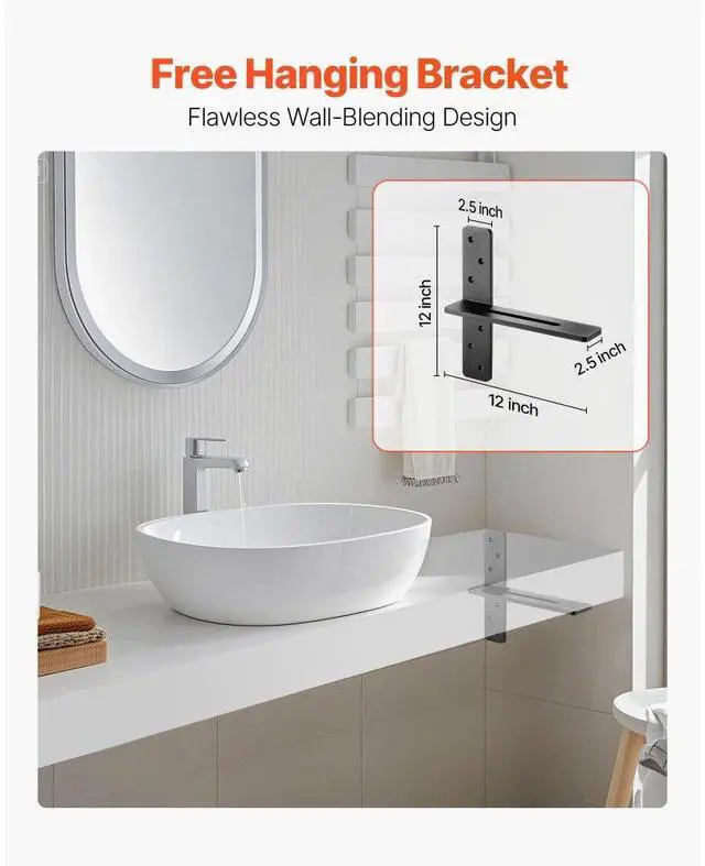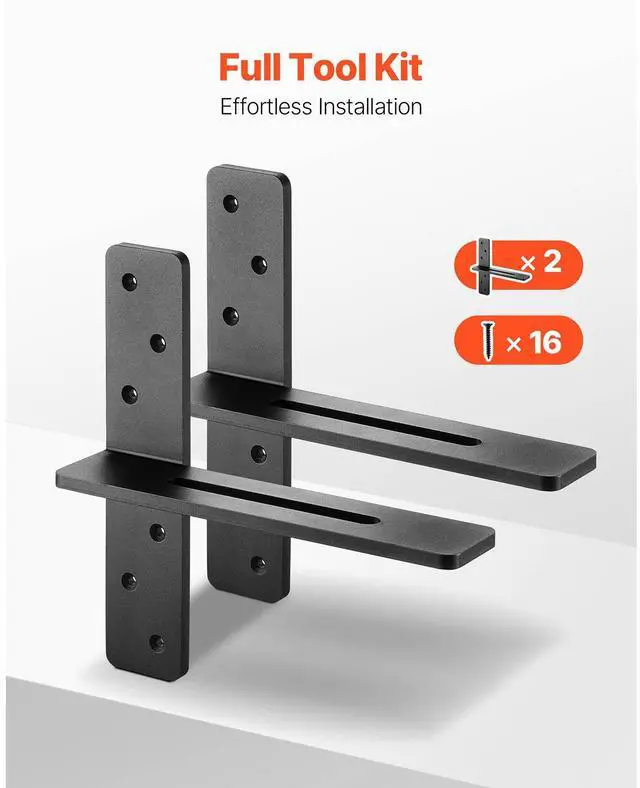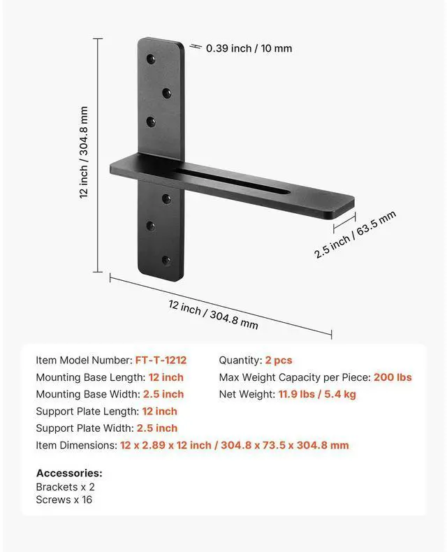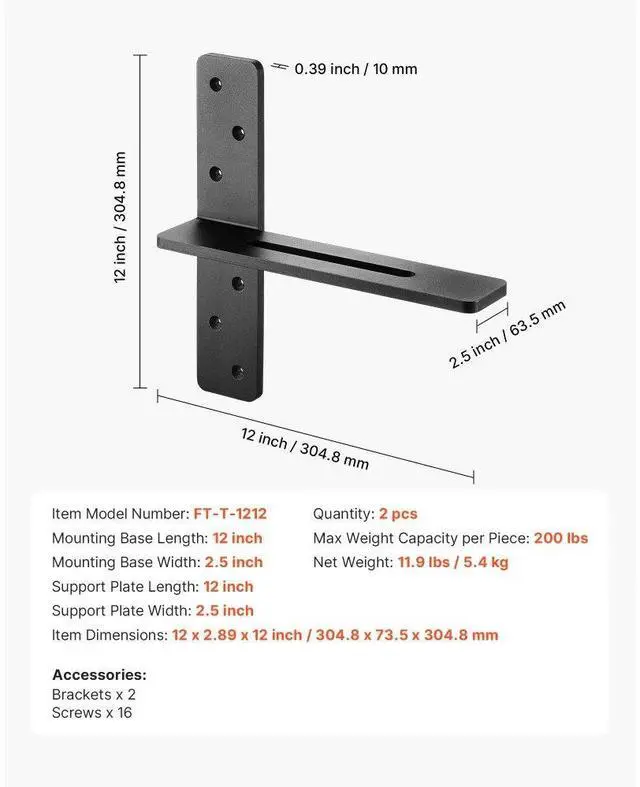 2 Pcs Shelf Brackets 12 inch / 304.8 mm Heavy Duty Floating Shelf Brackets T-Shaped Floating Shelf Brackets Durable Steel Build Strong Versatility Multiple Size Options Quick 3-Step Installation Various Mounting Methods