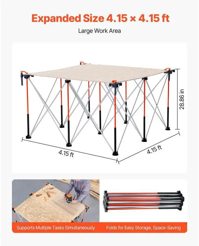Portable Folding Workstand 4.15 x 4.15 ft Collapsible Work Stand 3500lbs Capacity Portable Workstand with High Weight Capacity Reinforced Tubing for Stability and Strength Efficient Work Setup Multi-Purpose Workstation Thoughtful Design