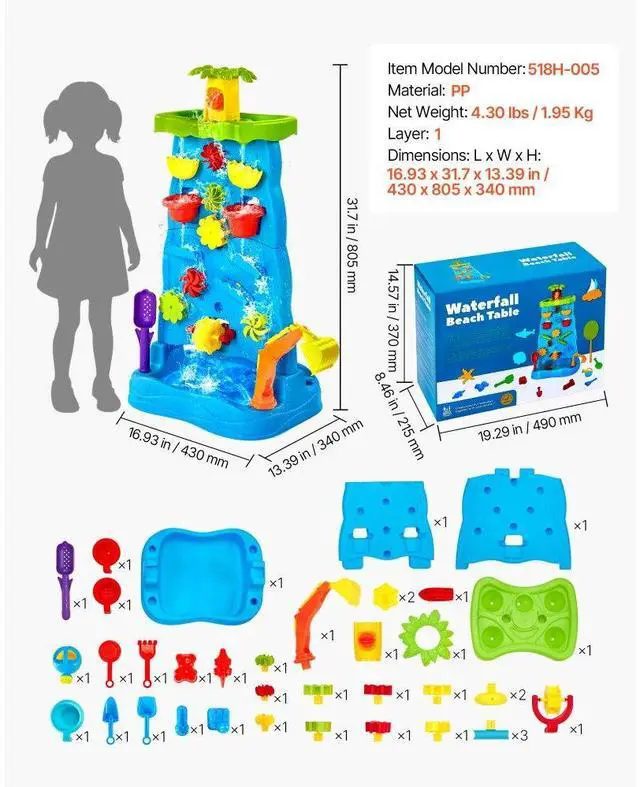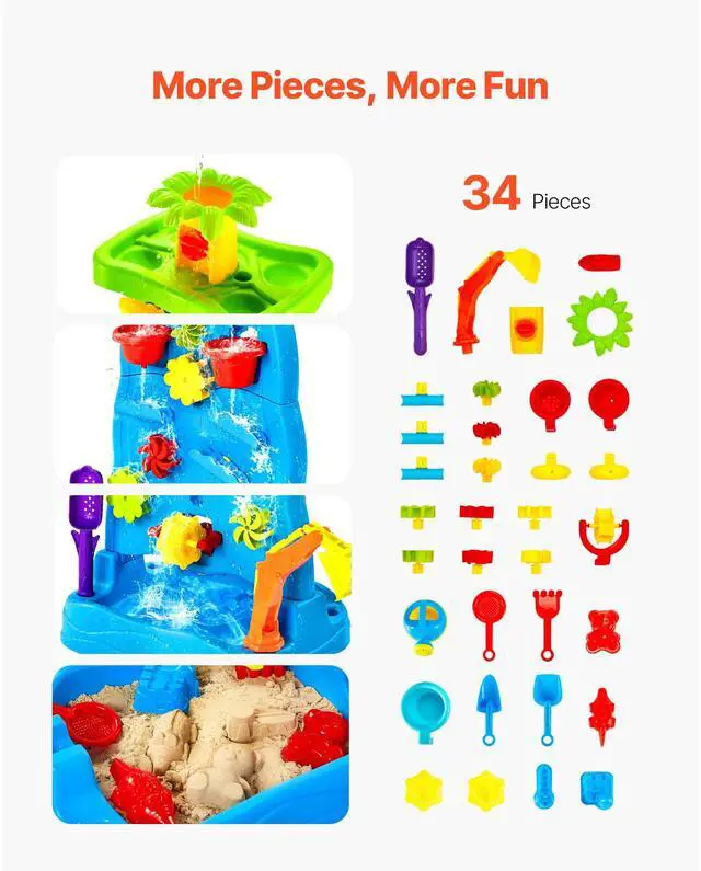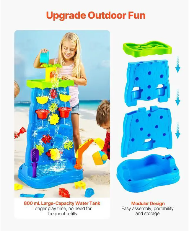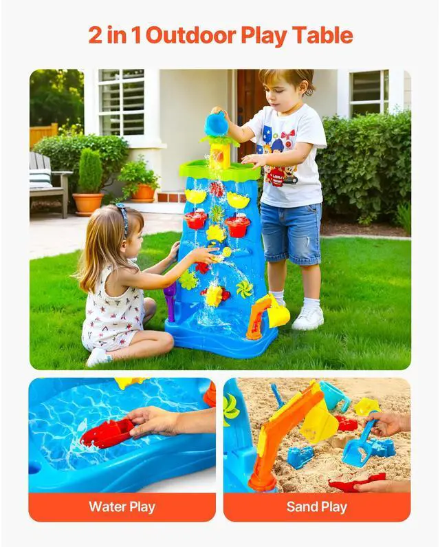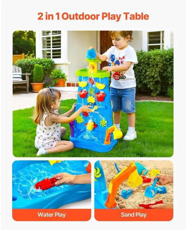 VEVOR Sand & Water Table for Toddlers Double-Sided Kids Activity Waterfall Table Vary Your Fun with More Pieces Safe Material & Stable Structure Quick-Dry & Easy-to-Clean Design Easy Portability Ideal Gift Enjoy Fun Item Color: Blue, Item