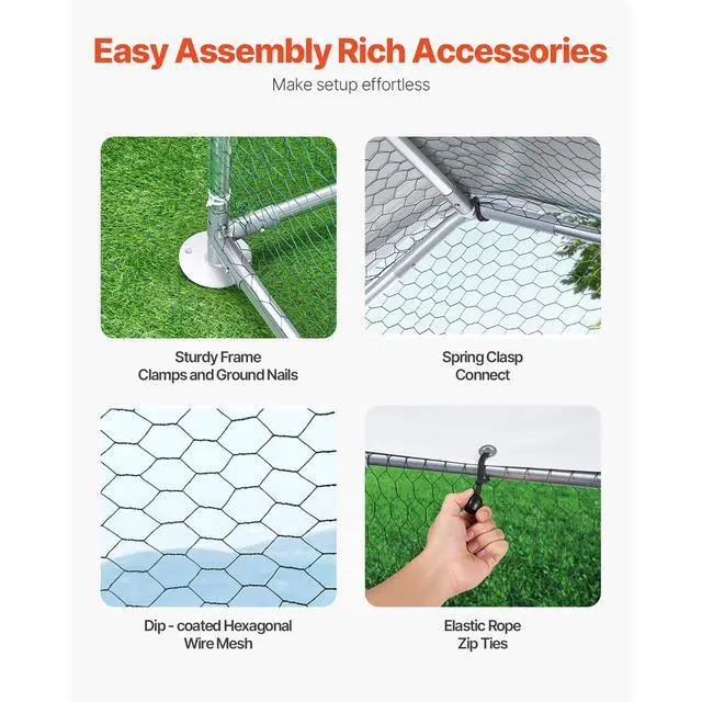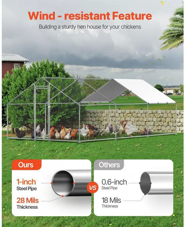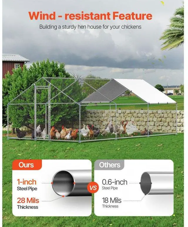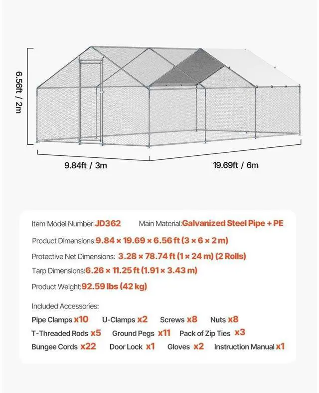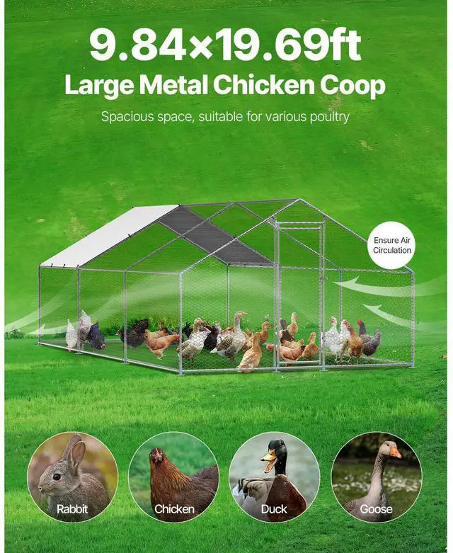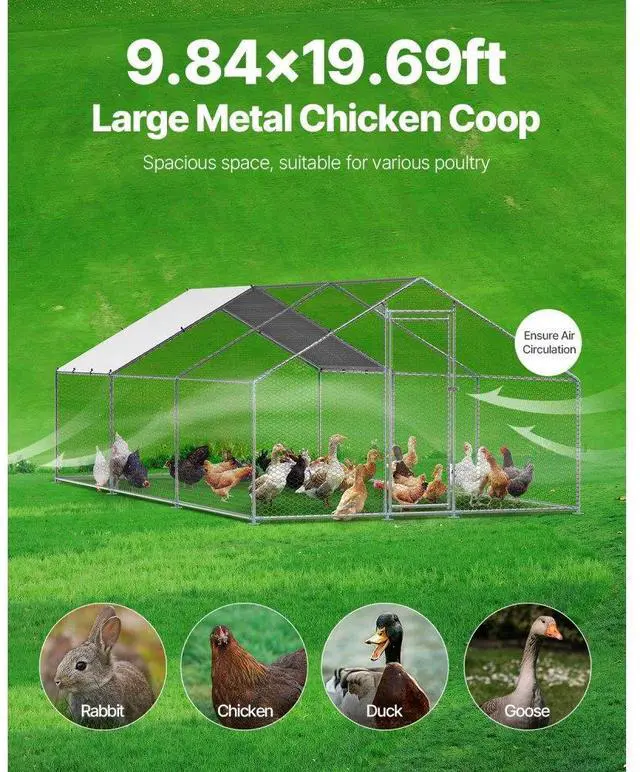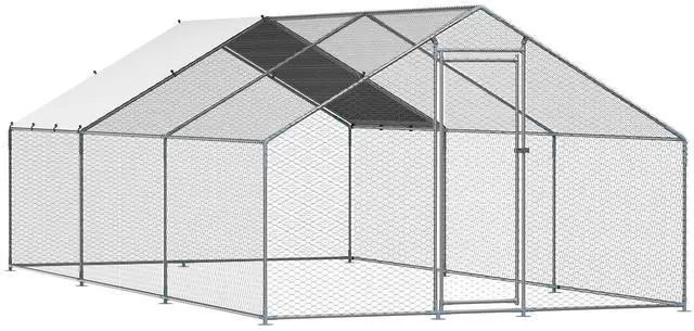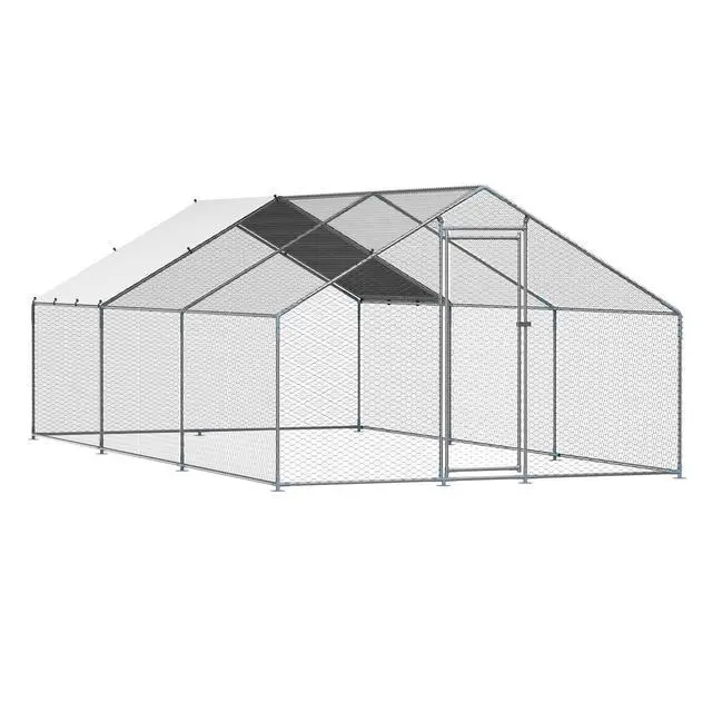 Metal Chicken Coop 9.8 x 19.6 x 6.5 ft Walk-in Chicken Run with Cover Spire Roof Sturdy Structure Ideal Shelter for Chincken Convenient Usage Versatile Application PE Canopy Optimal Comfort and