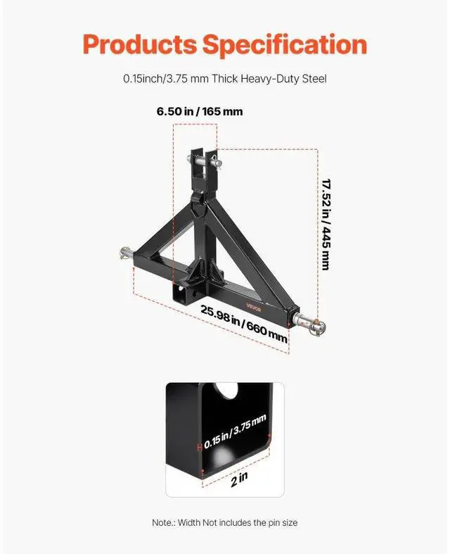 3 Point 2" Trailer Hitch Receiver Tractor Quick Hitch Adapter 3000lbs Capacity High Cost-Effectiveness Easy Removal Wide Compatibility Multi-Scene Use Complete Accessories Low Maintenance Cost, Easy to