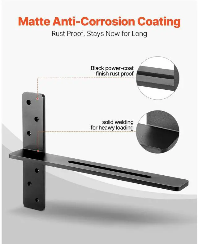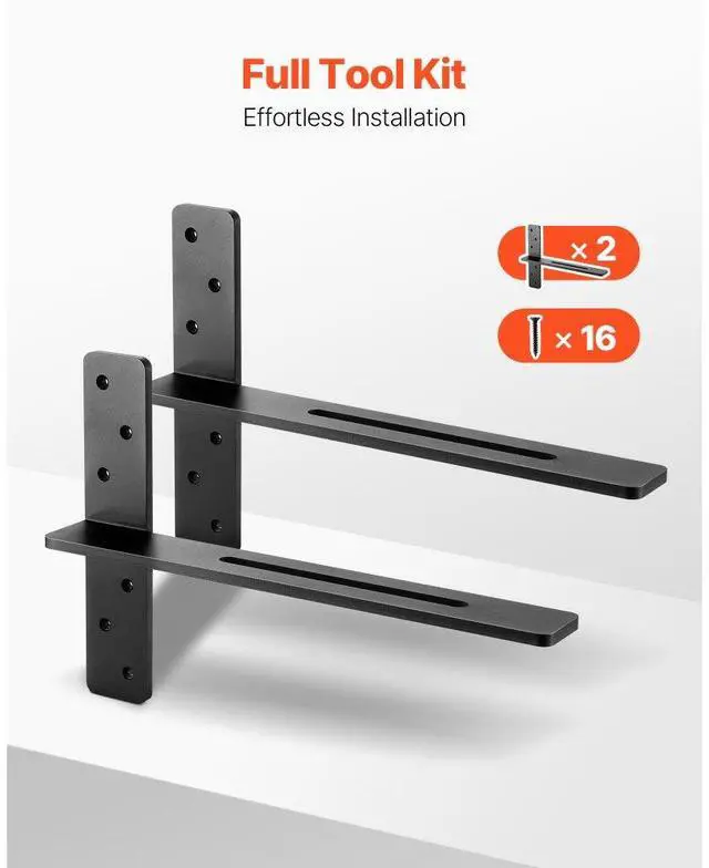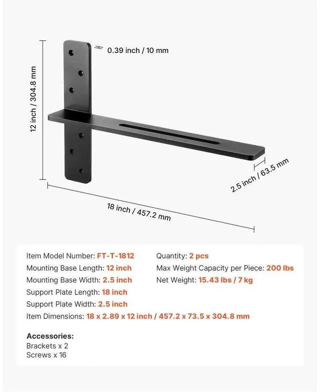 2 Pcs Shelf Brackets 18 inch / 457.2 mm Heavy Duty Floating Shelf Brackets T-Shaped Floating Shelf Brackets Durable Steel Build Strong Versatility Multiple Size Options Quick 3-Step Installation Various Mounting Methods