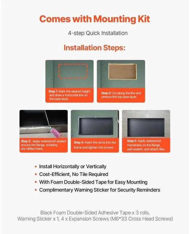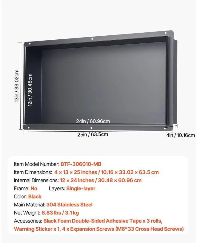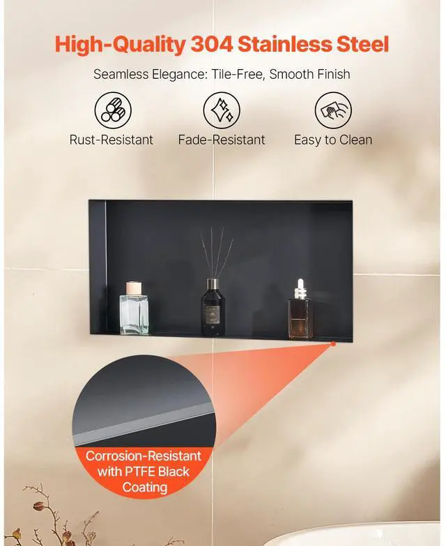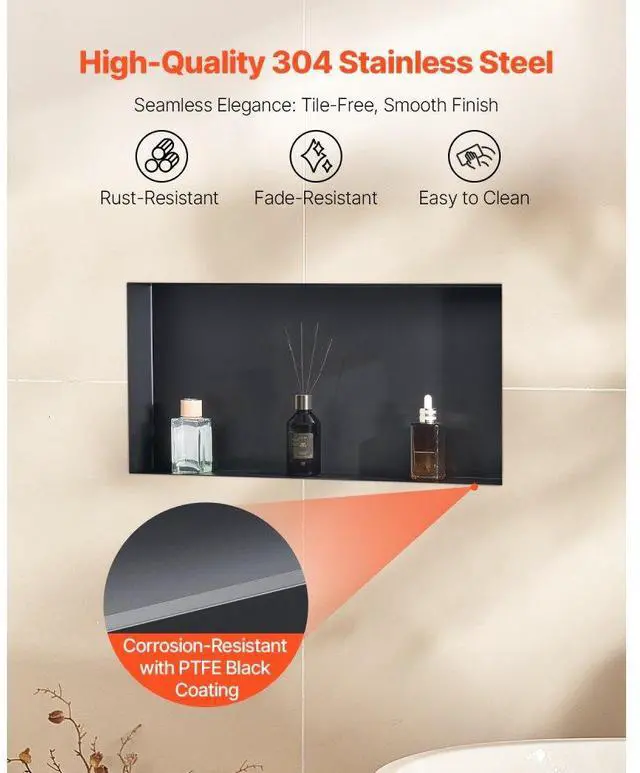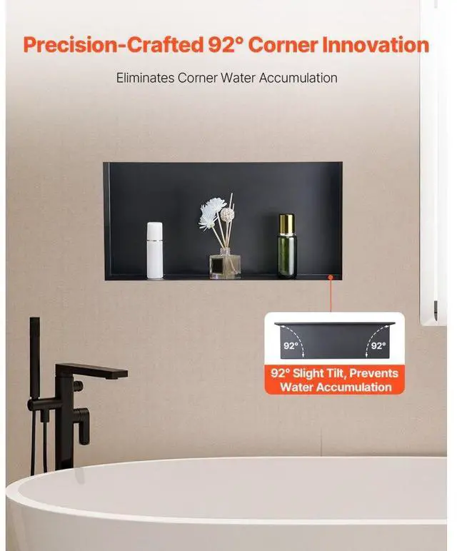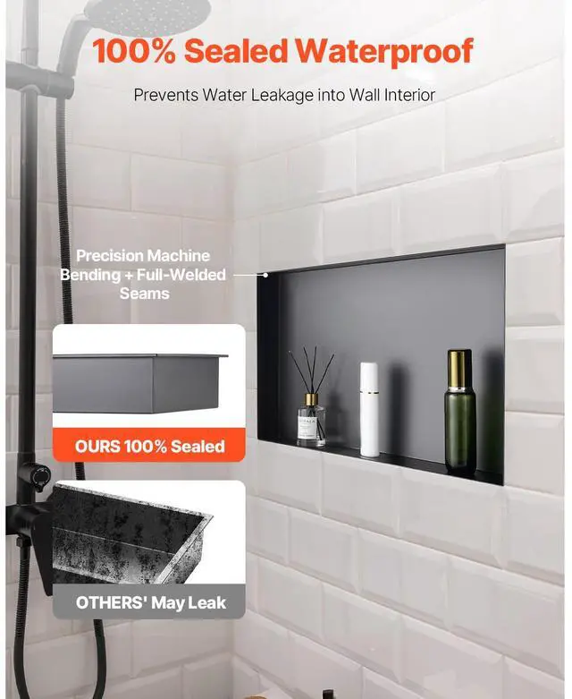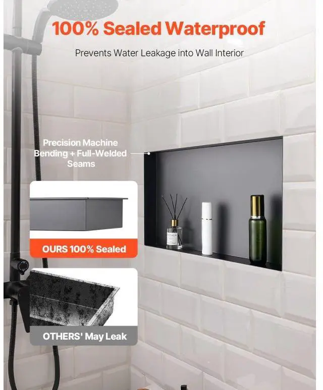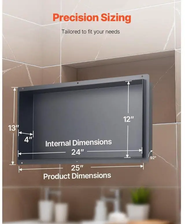Shower Niche 13 x 25 x 4 inch Frameless Recessed Shelf Stainless Steel Waterproof Niche Integrated Structure Design 92° Drip Slope Versatile Selection Wide Application Rich Installation