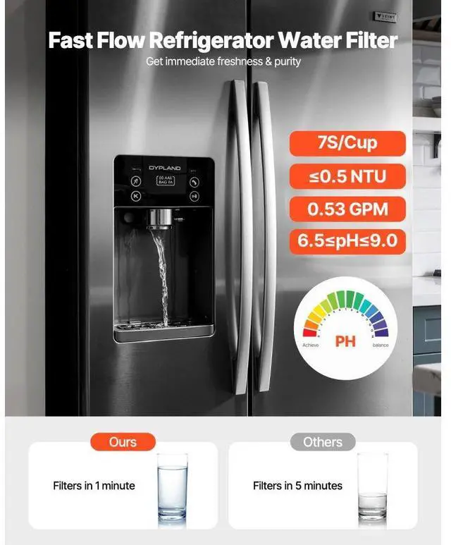 Refrigerator Water Filter Replacement EDR1RXD1 Remove 70+ Contaminants White Pure Water, Pure Life Standard Connection Advanced Filtration Built to Last Premium Quality Easy to