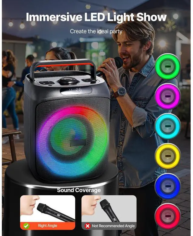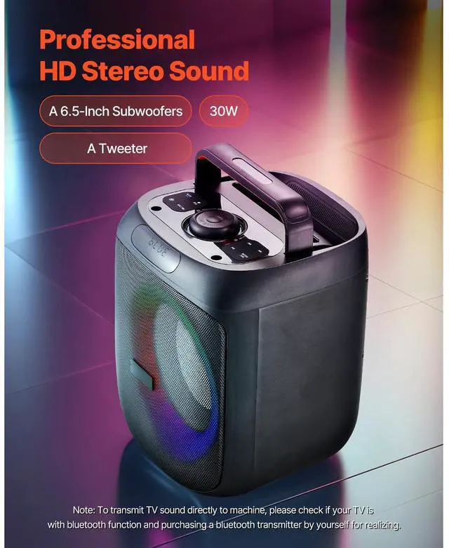 Karaoke Machine for Adults 30W 6.5 in Portable Bluetooth Speaker 2 Wireless Mic Premium Entertainment & Life Partner Vivid LED with Music Synic Advanced TWS 5.1 Technology High Capacity Battery Easy to Carry Turn Your Place into a