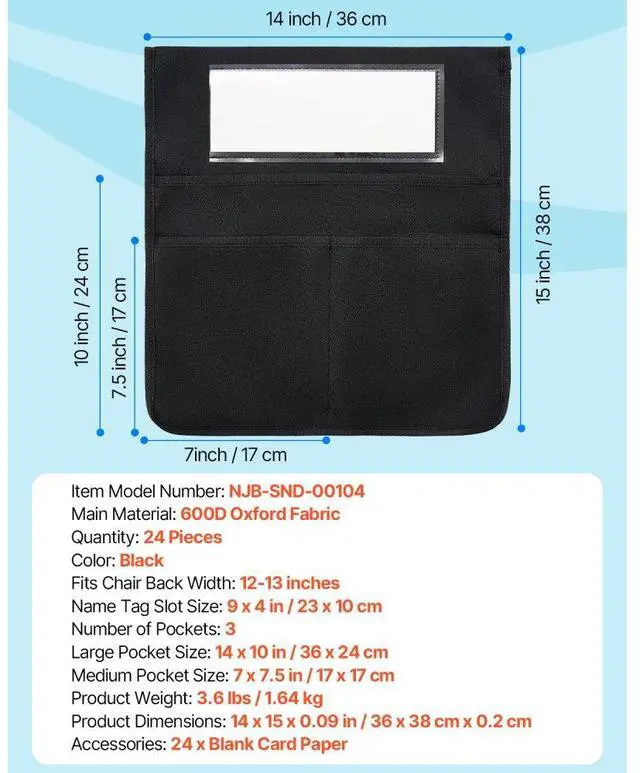 VEVOR Chair Pockets for Classroom 24 Pack Seat Pocket with Name Tag Black Organized Learning Easy Access Durable Design Personalized Tags Versatile & Simple Easy to Clean Medium