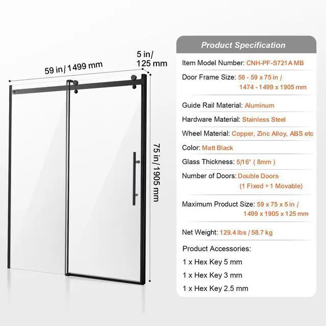Door Frame Size: 58-59 x 75 in/1474-1499 x 1905 mm