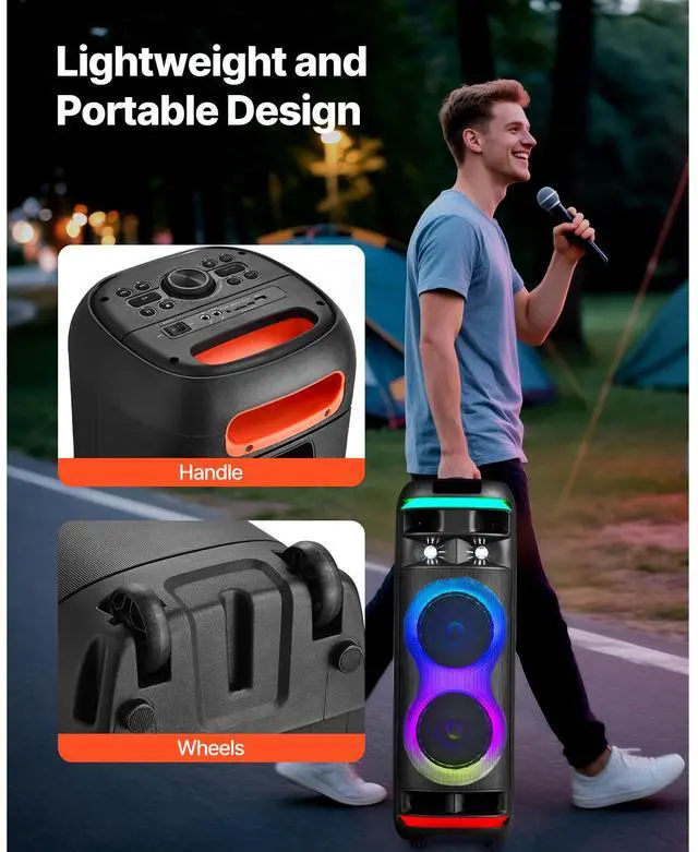 • Karaoke Machine for Adults 8 in Portable Bluetooth Speaker 2 Wireless Microphone
