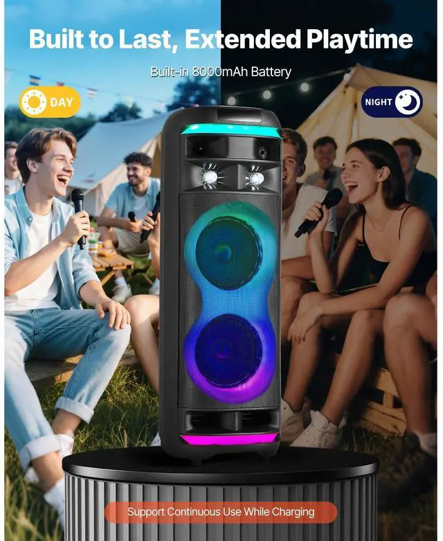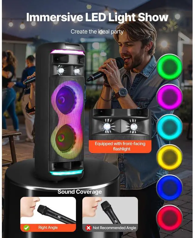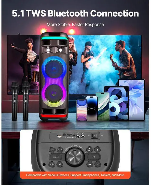 Karaoke Machine for Adults 8 in Portable Bluetooth Speaker 2 Wireless Microphone Premium Entertainment & Life Partner Vivid LED with Music Synic Advanced TWS 5.1 Technology High Capacity Battery Easy to Carry Turn Your Place into a