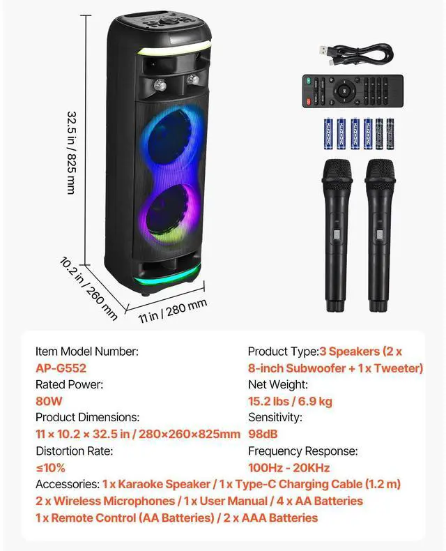 Karaoke Machine for Adults 8 in Portable Bluetooth Speaker 2 Wireless Microphone