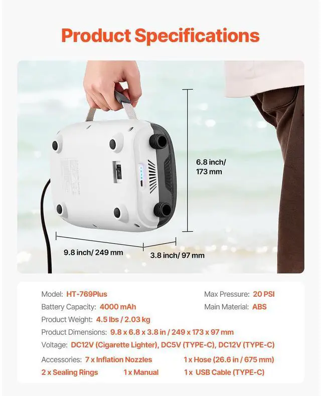Paddle Board Pump Rechargeable Battery-Powered 20PSI Dual Stage SUP Air Pump Wireless Paddle Board Pump Smart Control Easy Operation Fast Charging Versatile Kit