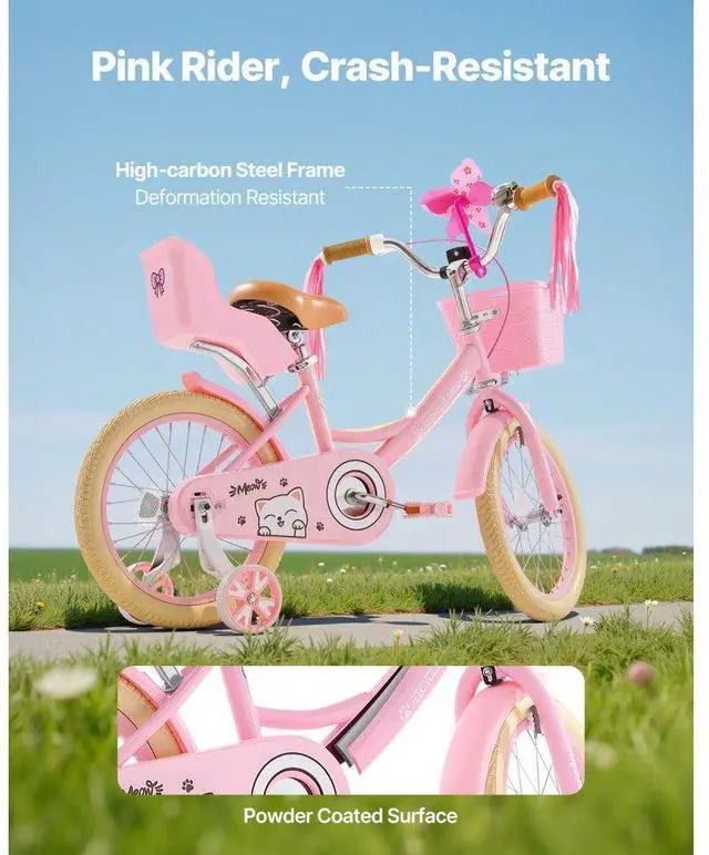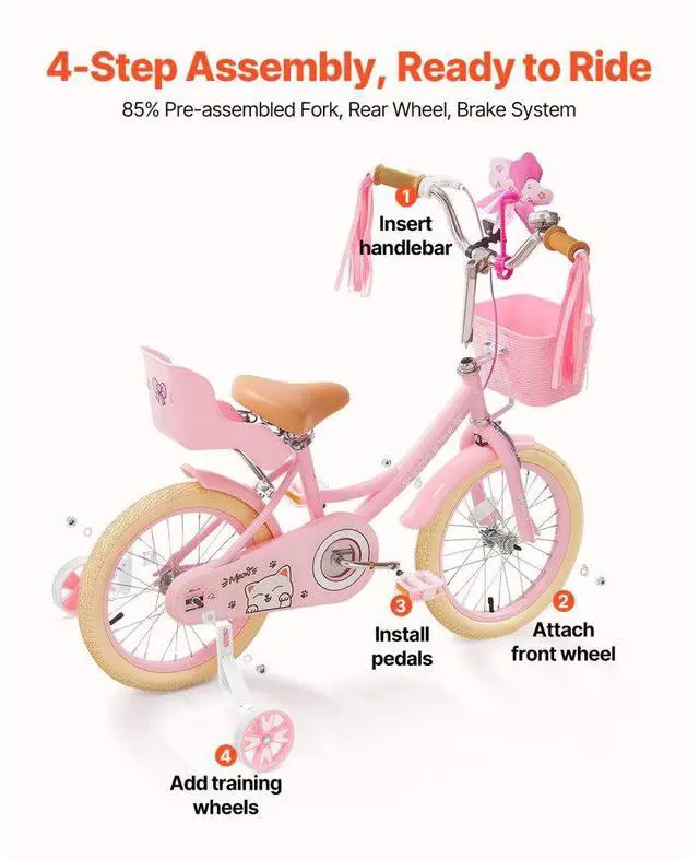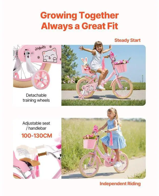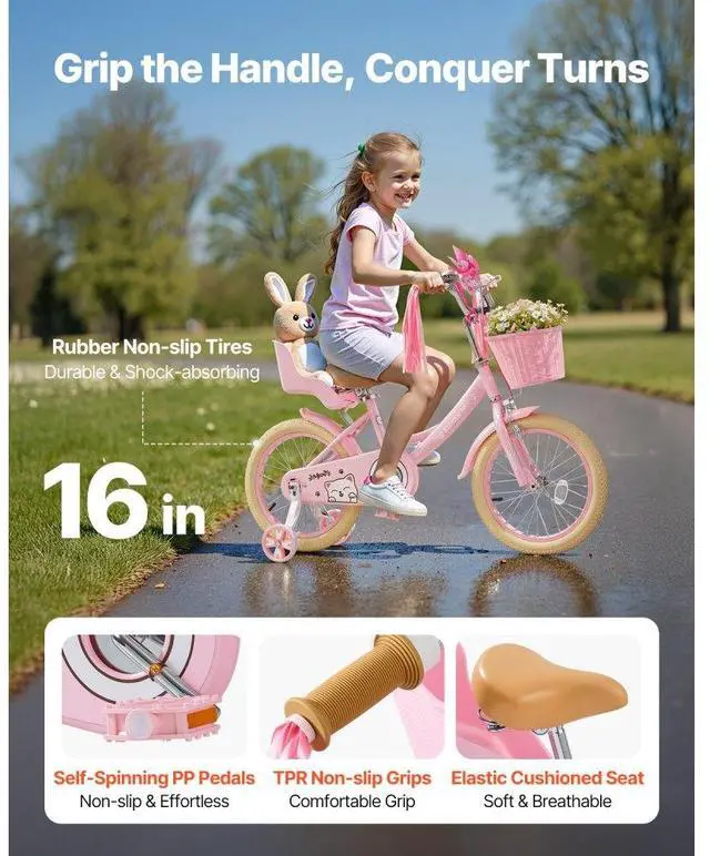 VEVOR Kids Bike 16 Inches Princess Style Children Bicycle for Girls Aged 4-8 Street Explorer Tough Ride Anti-slip Protection No-hassle for Beginners User-friendly Design Beginner-friendly