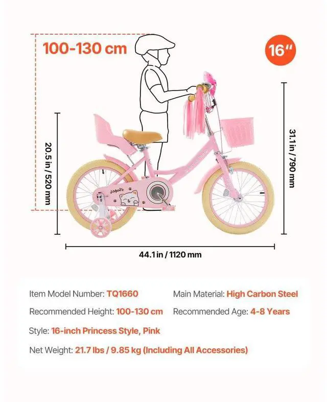 Model Number: TQ1660, Style: 16-inch Princess Style, Pink,