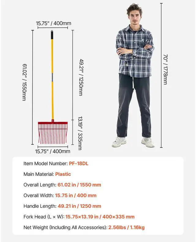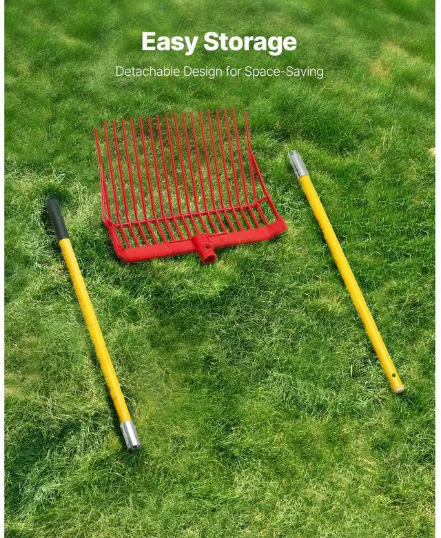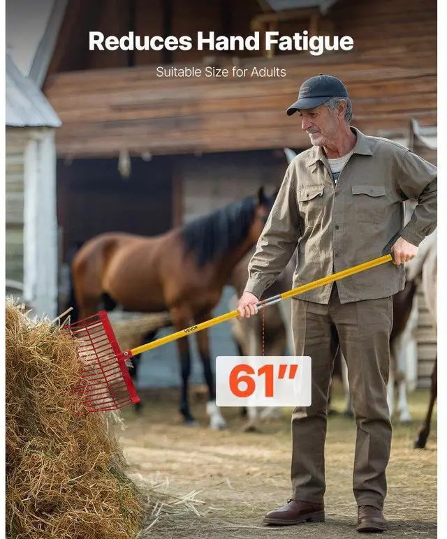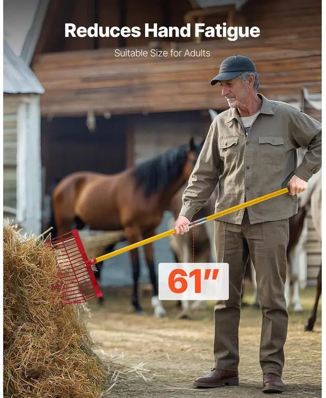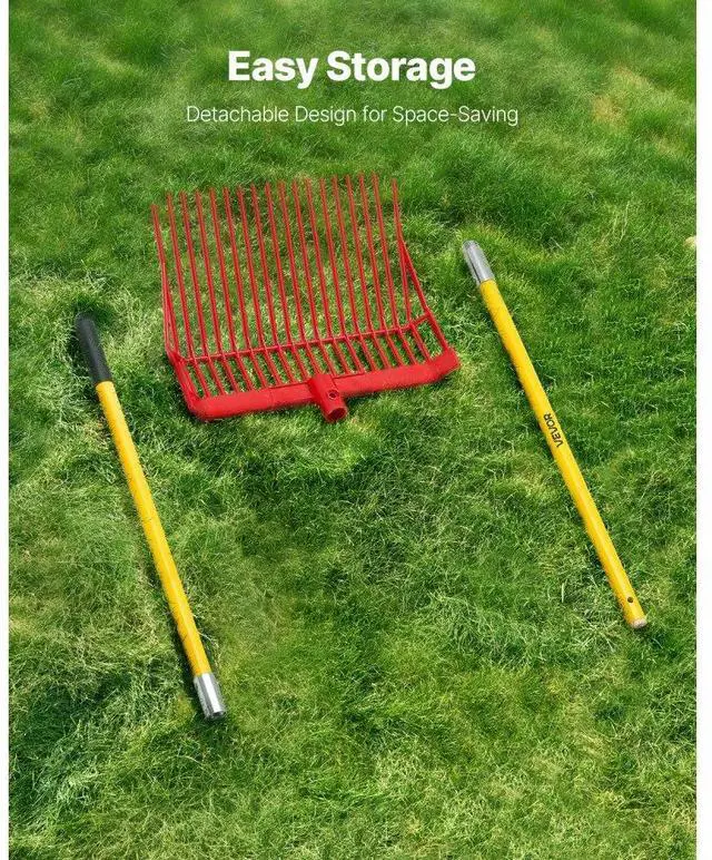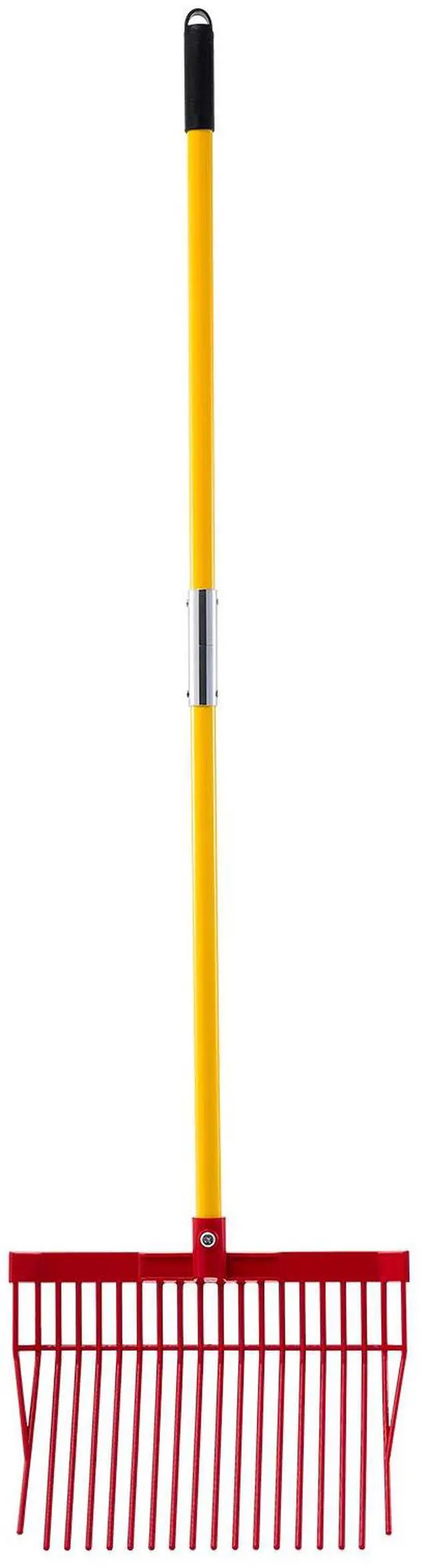 Horse Manure Fork Garden Tool 18 Angled Tine Plastic Pitchfork Muck Rake for Hay Effortless & Convenient to Use Ergonomic, Effort-Saving Design Integrated Forged Steel Fork Head High-Strength Handle Versatile Gardening Tool Optimized Tooth Spacing