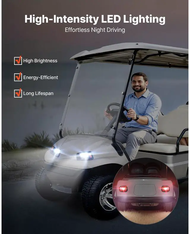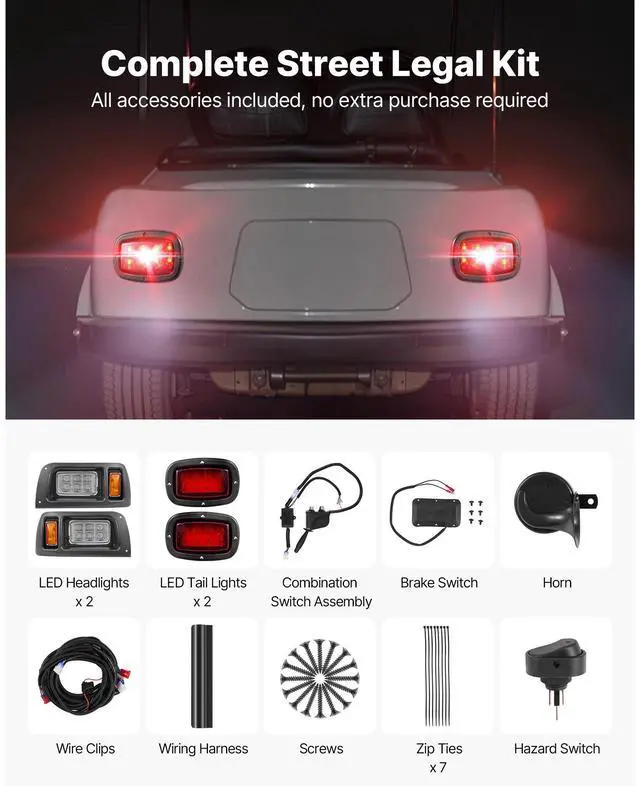 12V Golf Cart LED Headlight Tail Light Kit Legal Street For Club Car DS 1993-Up Tailored for Your Club Car DS 1993-Up Clear Illumination for Confident Driving Rain and Dust-Resistant Reliable Outdoor Use Long Power Cable Easy to