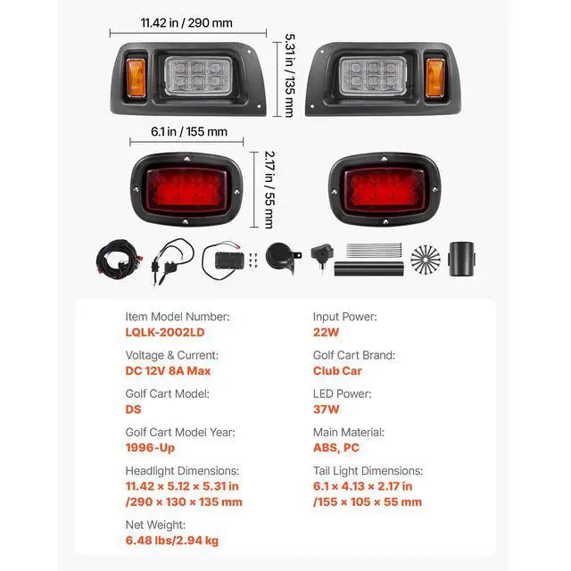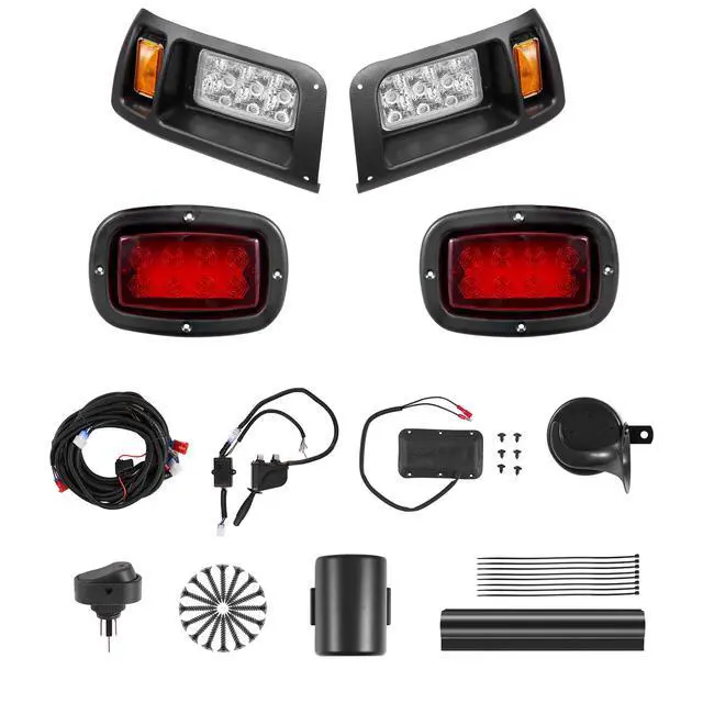 12V Golf Cart LED Headlight Tail Light Kit Legal Street For Club Car DS 1993-Up Tailored for Your Club Car DS 1993-Up Clear Illumination for Confident Driving Rain and Dust-Resistant Reliable Outdoor Use Long Power Cable Easy to