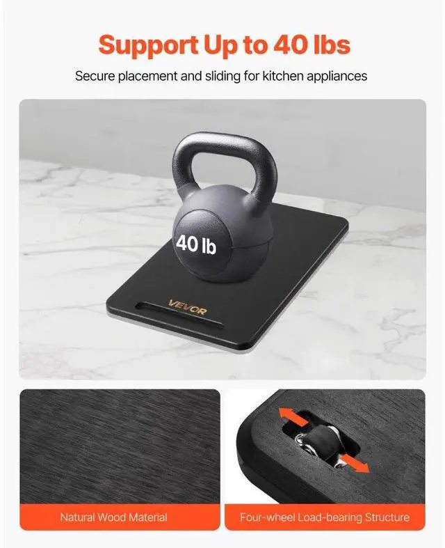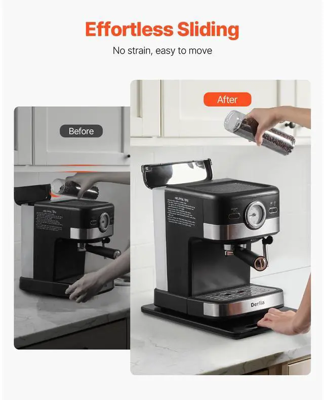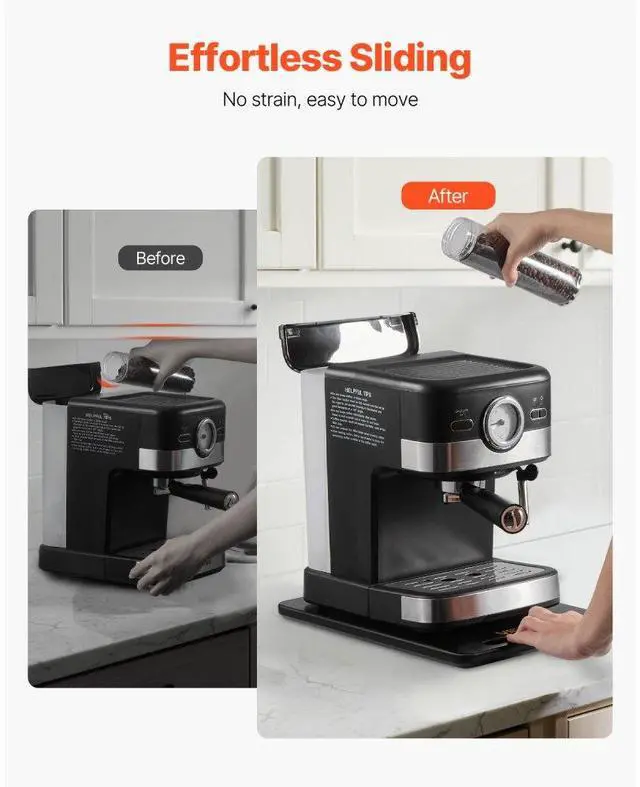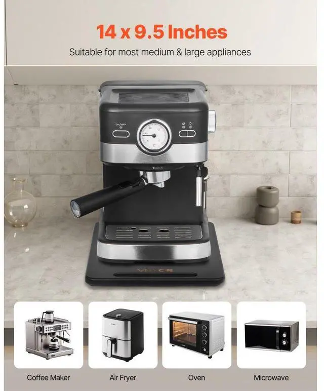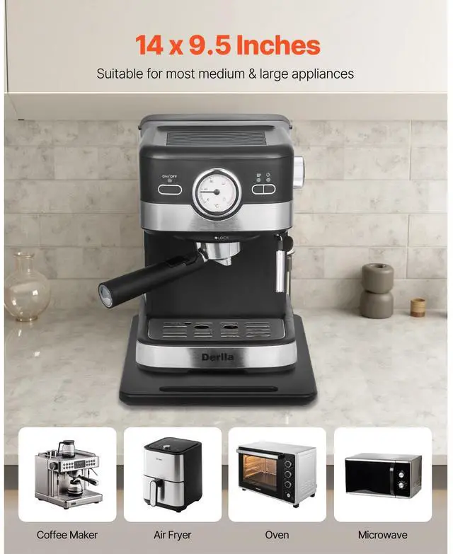VEVOR Appliance Slider 14 x 9.5 in Sliding Tray for Coffee Maker Black Effortless Sliding Silent Rubber Wheels Ergonomic Hollow Handle Easy to Clean High Compatibility Elegant Appearance