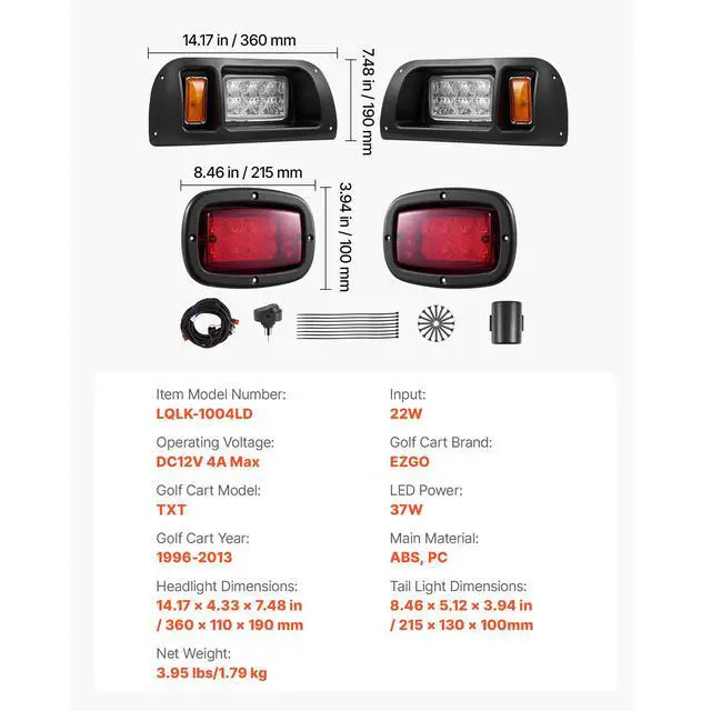 12 Volt Golf Cart LED Headlight Tail Light Kit For EZGO TXT 1996-2013 Models Tailored for Your EZGO TXT 1996-2013 Reliable Outdoor Use Rain and Dust-Resistant One-Touch Operation Long Power Cable Easy to