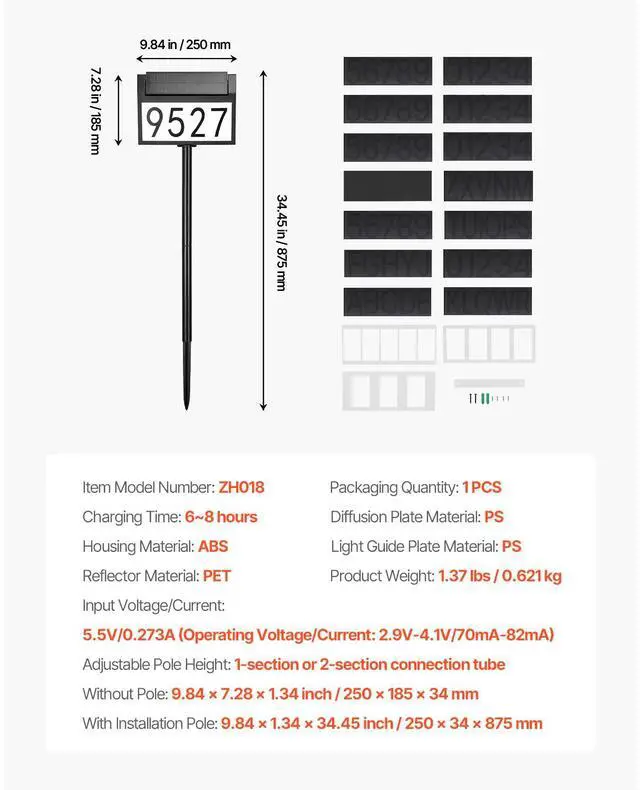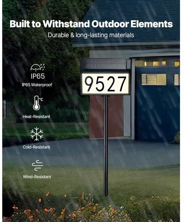 Solar House Numbers Waterproof LED Address Signs Stable for Home Yard Street Three-Color Integration Long-Lasting Operation Durable and Long-Lasting Safe and Energy-Efficient Versatile Application Easy DIY Customization