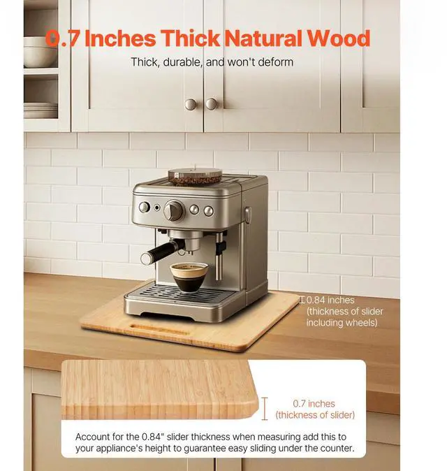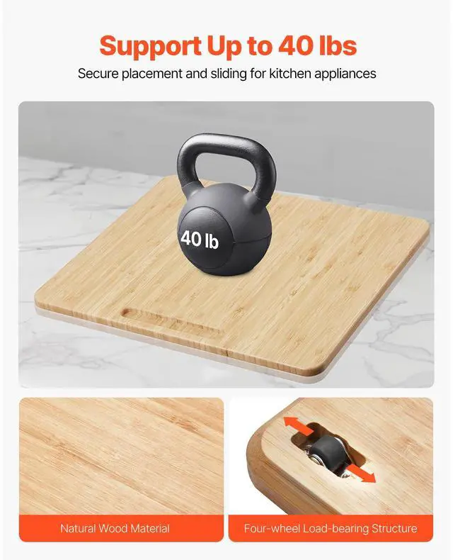 VEVOR Appliance Slider 13 x 16 in Sliding Tray for Kitchen Countertop Effortless Sliding Silent Rubber Wheels Ergonomic Hollow Handle Easy to Clean High Compatibility Elegant Appearance