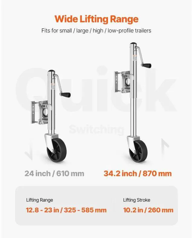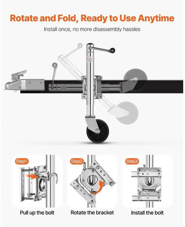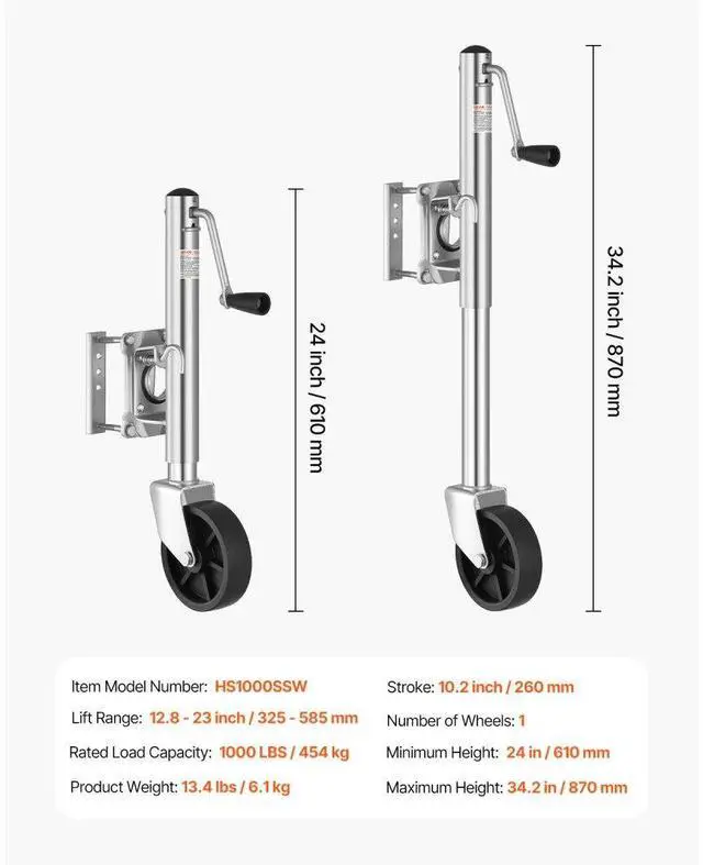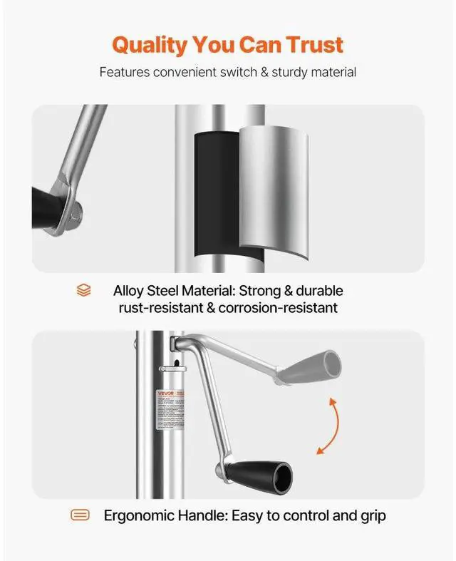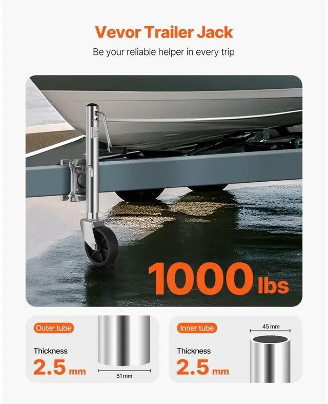 VEVOR Boat Trailer Jack Marine Heavy Duty Swivel Mount Tongue Jack 1000 lbs Load 1000 lbs Load Capacity Quality You Can Trust Complete Installation Accessories Easy Height Adjustment Suitable for Various Vehicles
