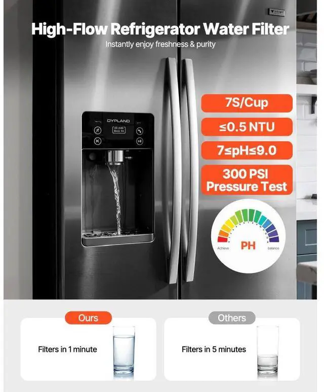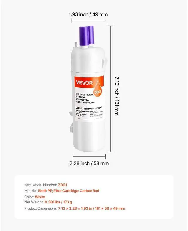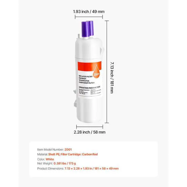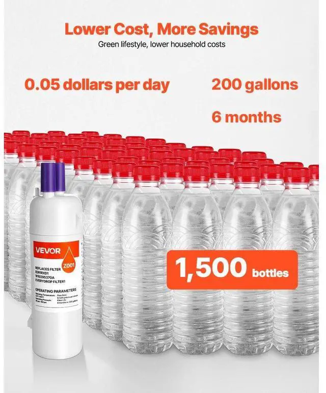 Refrigerator Water Filter Replacement EDR1RXD1 Remove 70+ Contaminants White Pure Water, Pure Life Standard Connection Advanced Filtration Built to Last Premium Quality Easy to