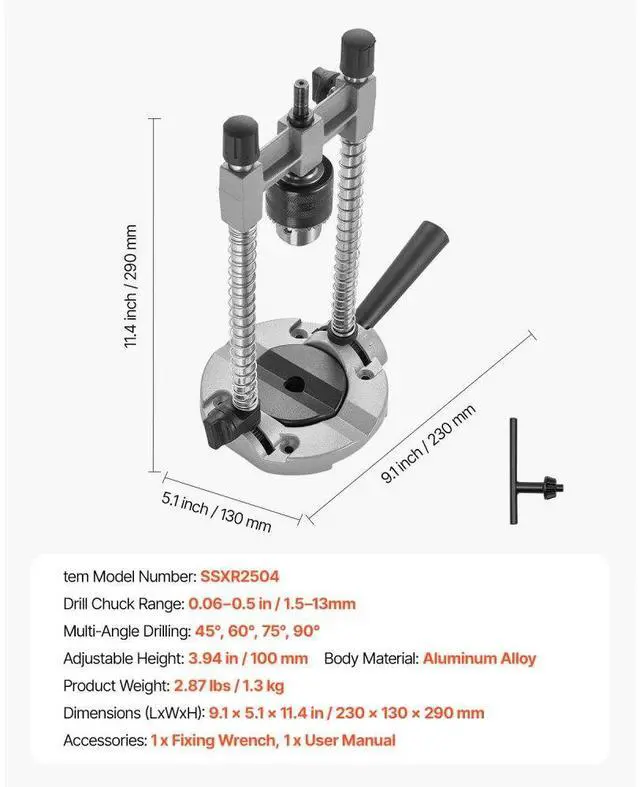 V-Groove Support Enhanced Control Wide Application Thickened Aluminum Alloy Base Drill Chuck Range: 0.060. 5 in / 1.513 mm,