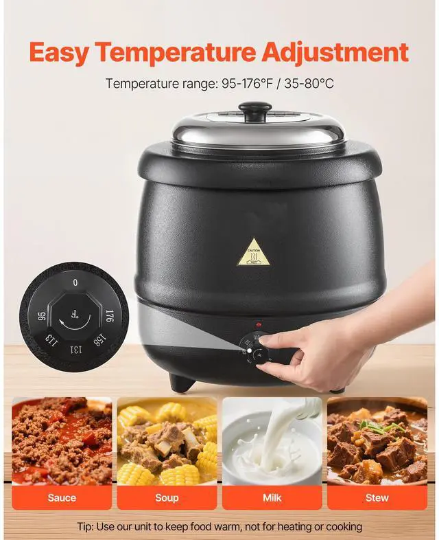 Commercial Soup Warmer Soup Station with 10Qt Pot Soup Kettle Warmer Large Capacity Durable and Scratch-Resistant Built-in Dry Burn Protection Thoughtful