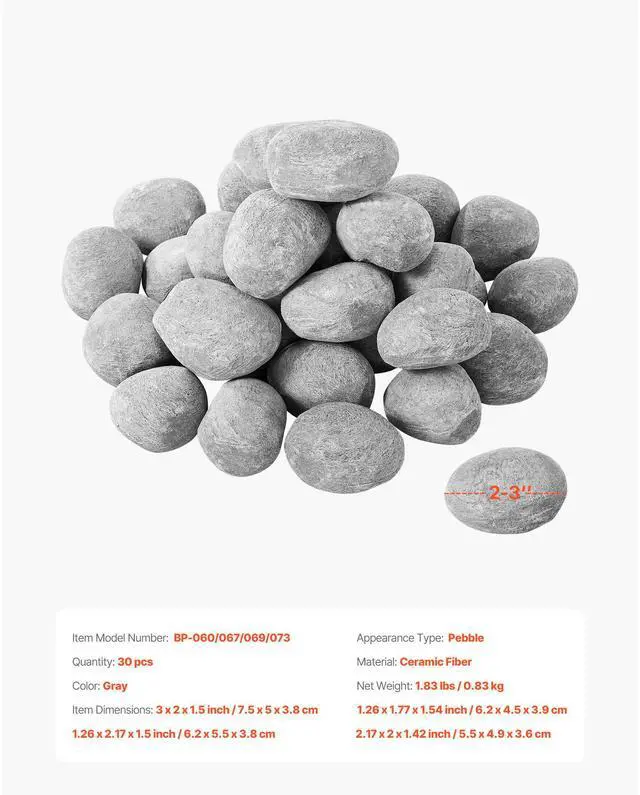 2-3 Inch 30 Pcs Ceramic Fire Pebble Stones Lava Rocks Reusable Premium Ceramic Fireballs Secure and Reliable Indoor and Outdoor Use Multiple Style Options Easy to Maintain No Cleaning Needed Appearance Type: Pebble, Color: Gray, Item