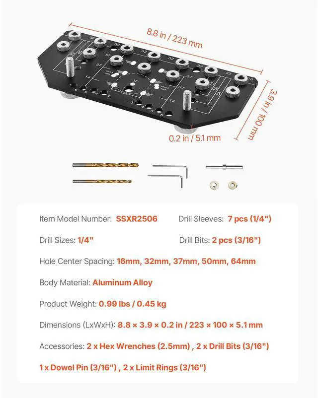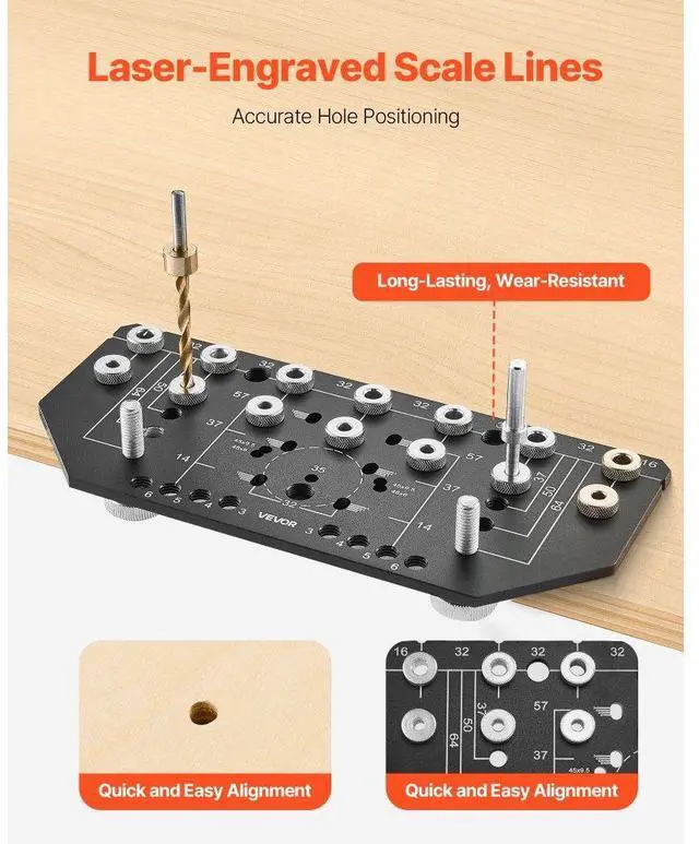 Shelf Pin Jig and Hinge Jig Two-in-One Aluminum Alloy Cabinet Hole Drilling Tool Practical Tool High-Quality Aluminum Alloy Lightweight and Portable User-Friendly Design Wide Application Laser Marked Scales