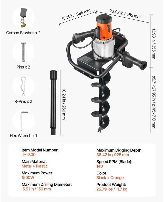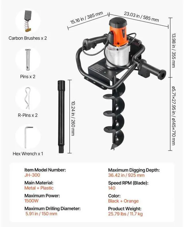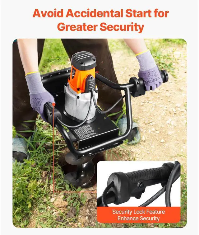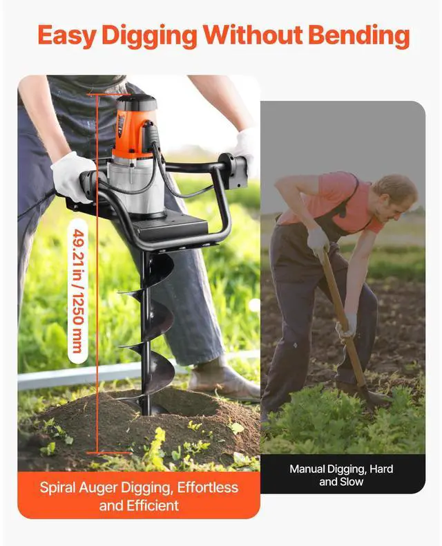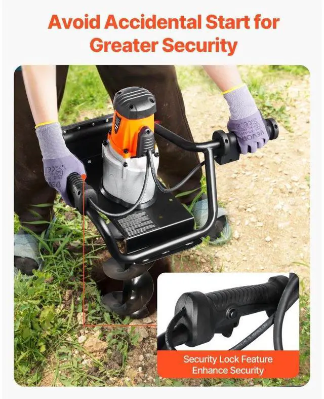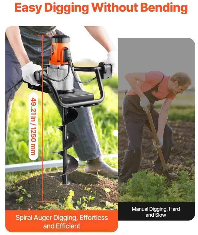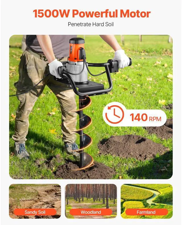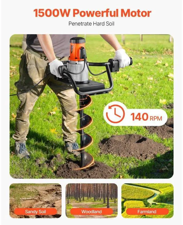 Electric Post Hole Digger 1500W Powerful Motor with 5.71 in Auger Bit Electric Spiral Drill Security Features Adjustable Drilling Depth Efficient and Green Versatile Usage Portable and Easy to Carry