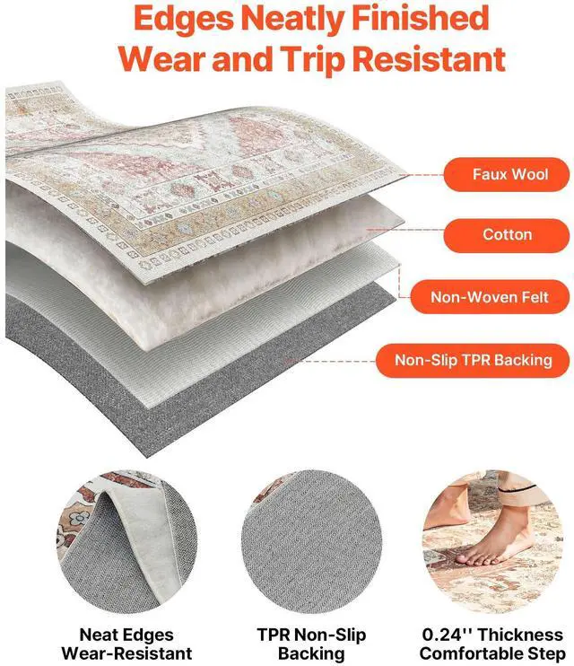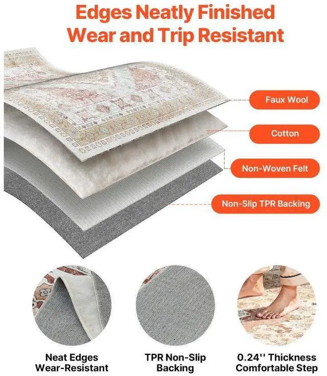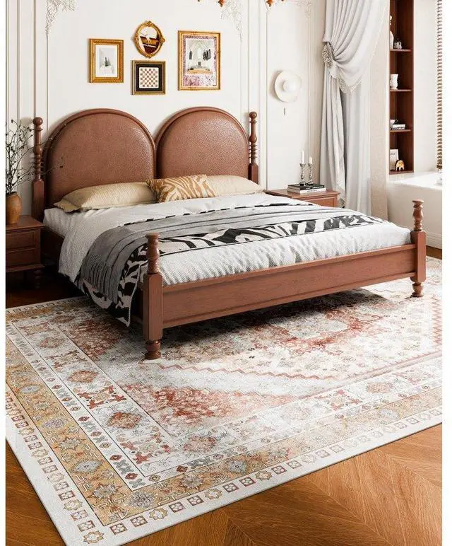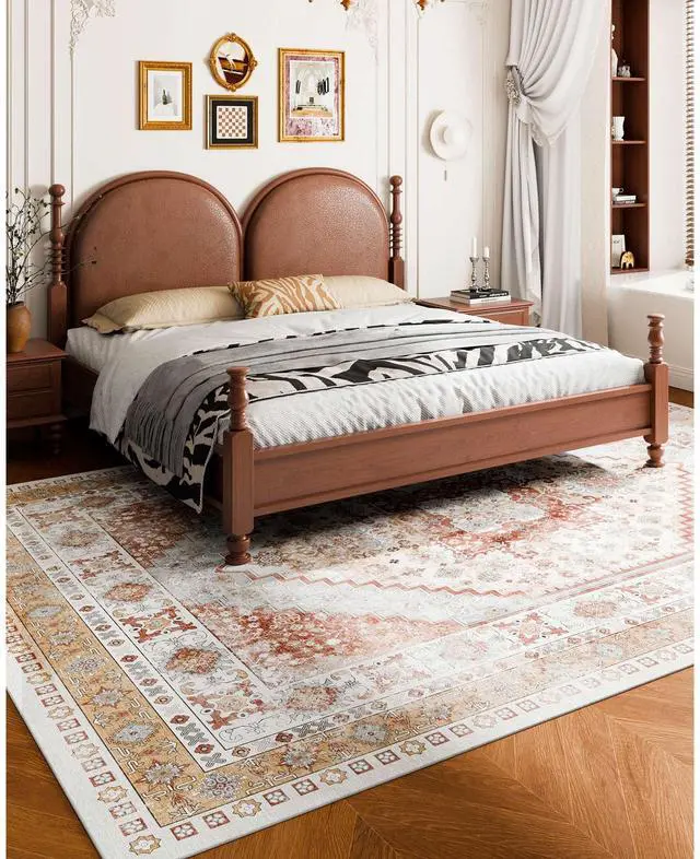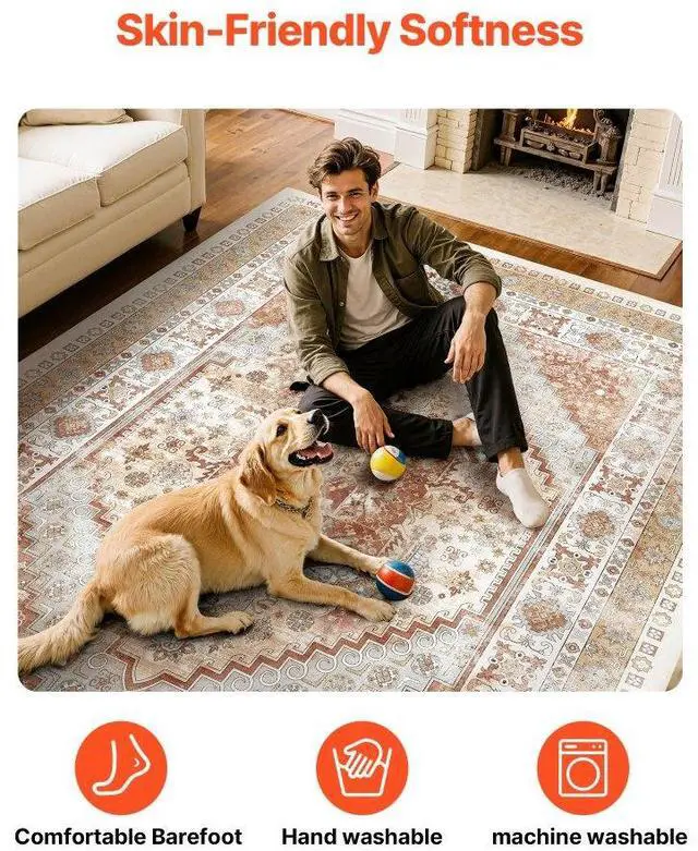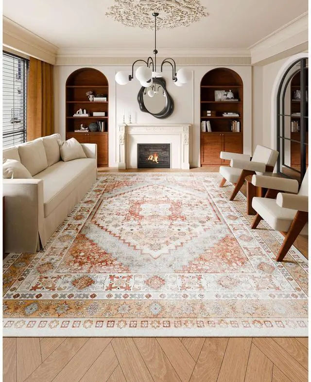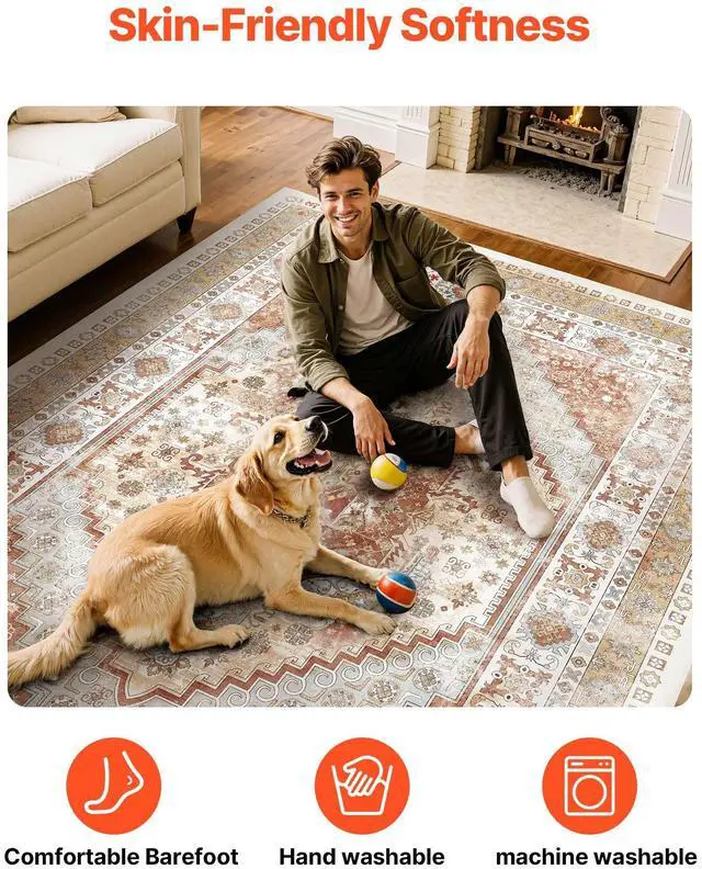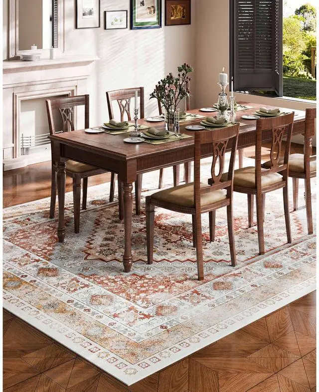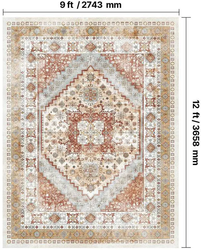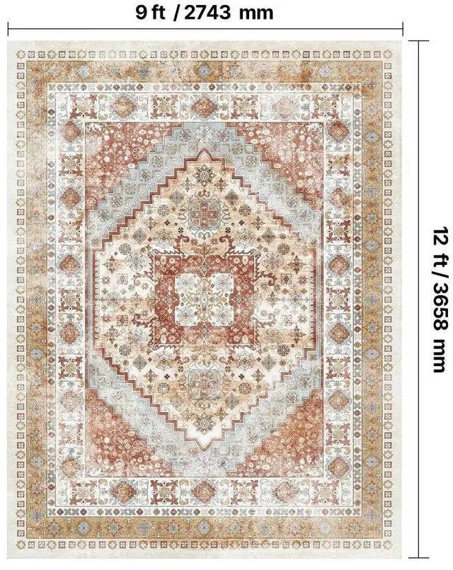 Large Area Rug 9 x 12 ft Anti-Skid Tear-Resistant Floor Mat Vintage Brown Red Multiple Size Options Cleaning Instructions Maintenance Guide Digital Printing Technology Color