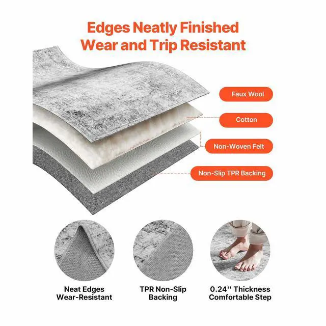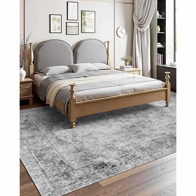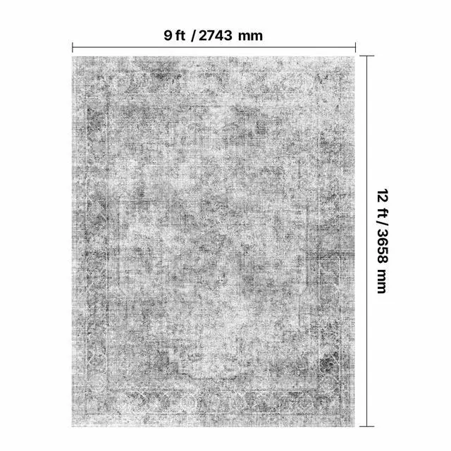 Area Rug, 9 x 12 ft Large Washable Boho Rug, Non-Slip and Tear-Resistant Soft Carpet, Pet Friendly Bohemian Area Rugs, Indoor Mat for Bedroom, Living Room, Office, Gray