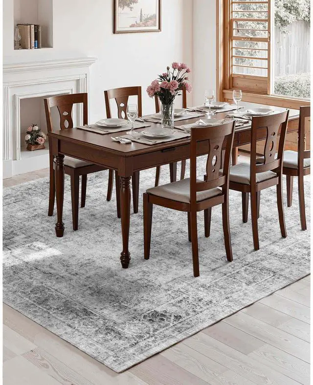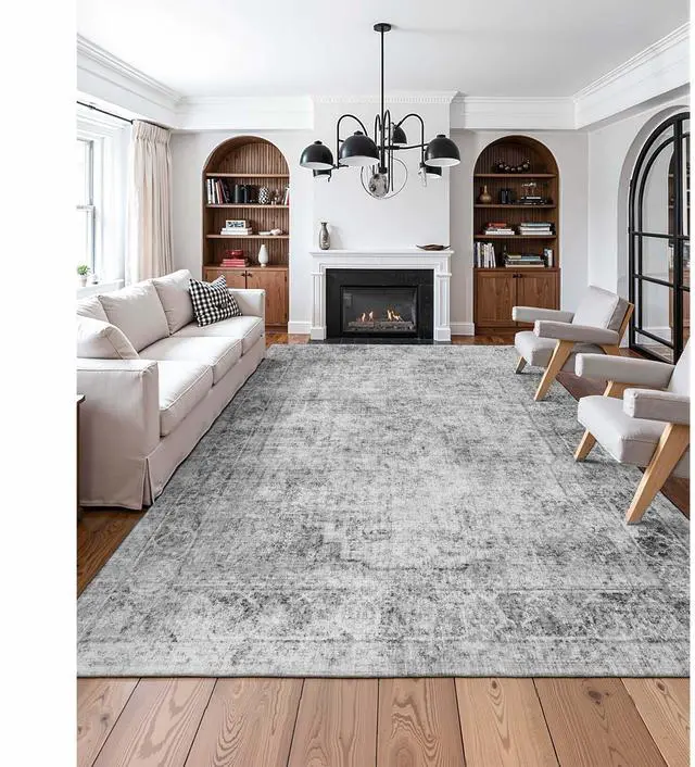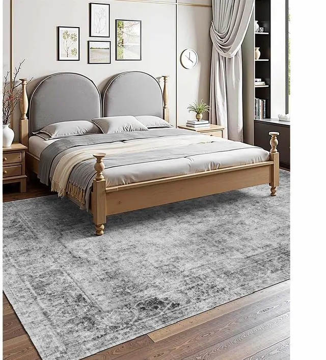 Large Area Rug 9 x 12 ft Anti-Skid and Tear-Resistant Floor Mat Bohemian Gray Multiple Size Options Cleaning Instructions Maintenance Guide Digital Printing Technology Color