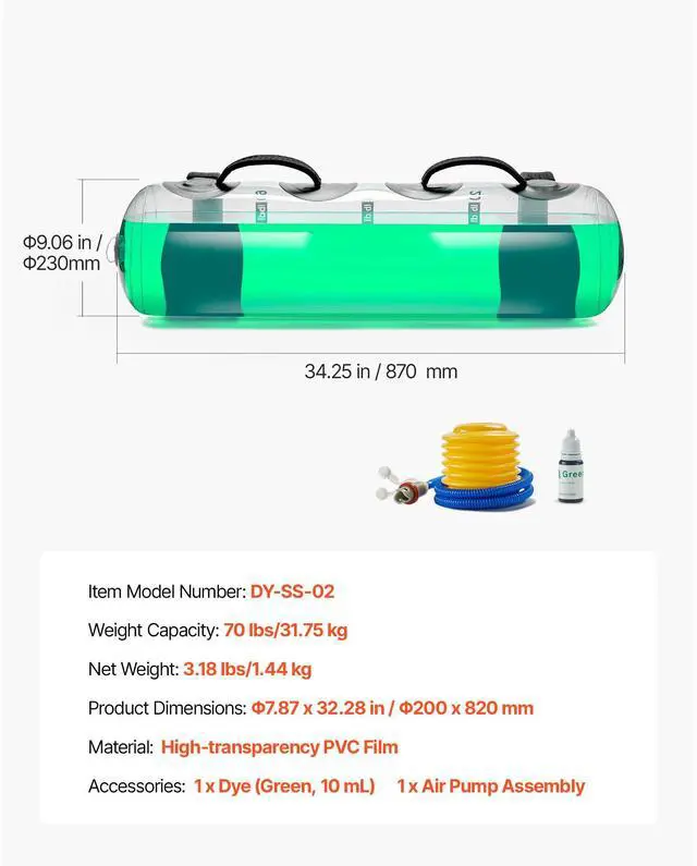 Fitness Water Weight Aqua Bag Training Water Bag Portable Stability Workout Professional Fitness Training Aqua Bag High-quality Material Suitable for Various Training Water-Filled Weight Adjustment Detail Design Clear