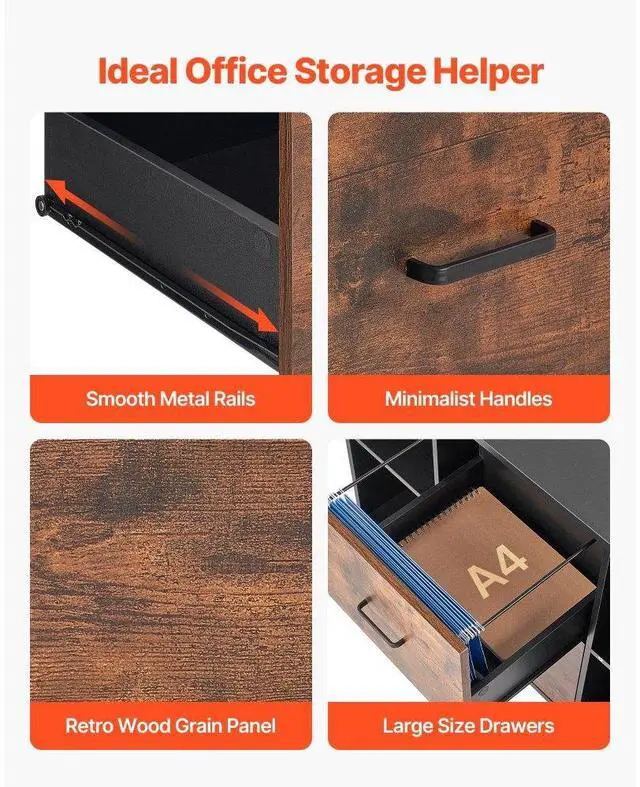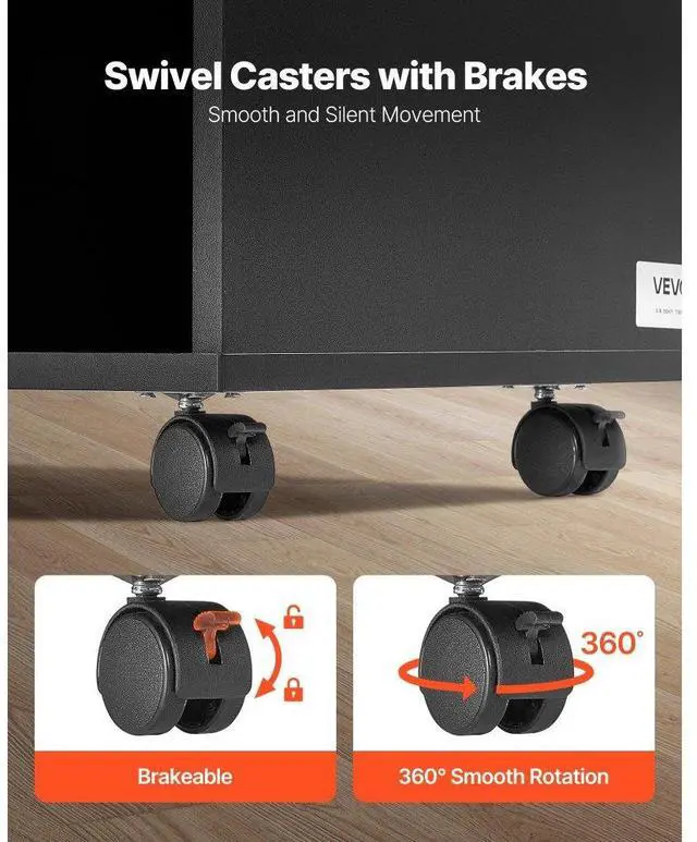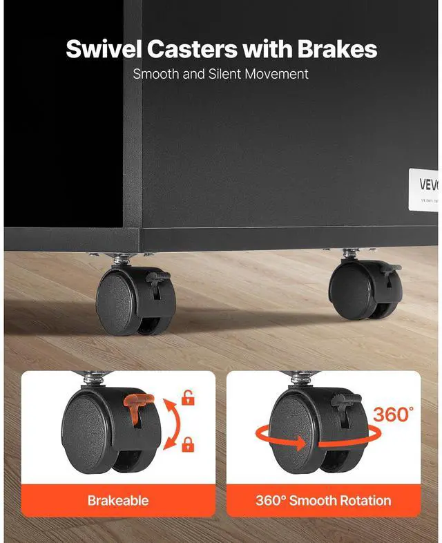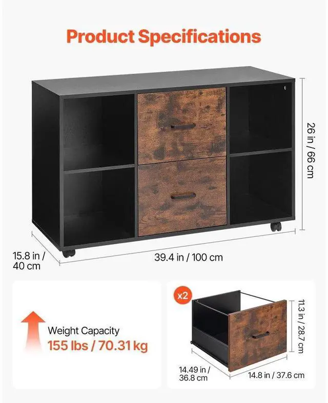 VEVOR 2 Drawer Wooden File Cabinet, Mobile Filing Cabinet with Open Shelves, Lateral Rolling File Storage with Lockable Wheels, Modern Free Standing Printer Stand for Home, Office, School, Black Multi-Functional Storage Cabinet Zoned Storage Design High-Quality Materials Large Capacity & Smooth Operation Versatile for Any Scene Quick & Easy Assembly Number of