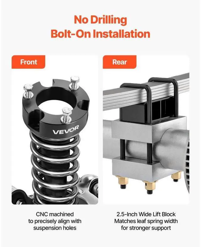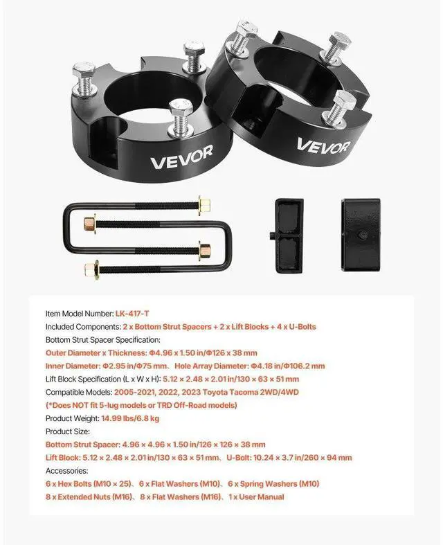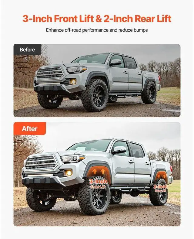 3 in Front 2 in Rear Leveling Lift Kit for 2005-2023 Toyota Tacoma 2WD/4WD Front & Rear Lift Upgrade OEM-Fit Compatibility Precision CNC Machining High-Strength Build Professional Installation Recommended Complete Kit Included Front
