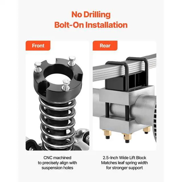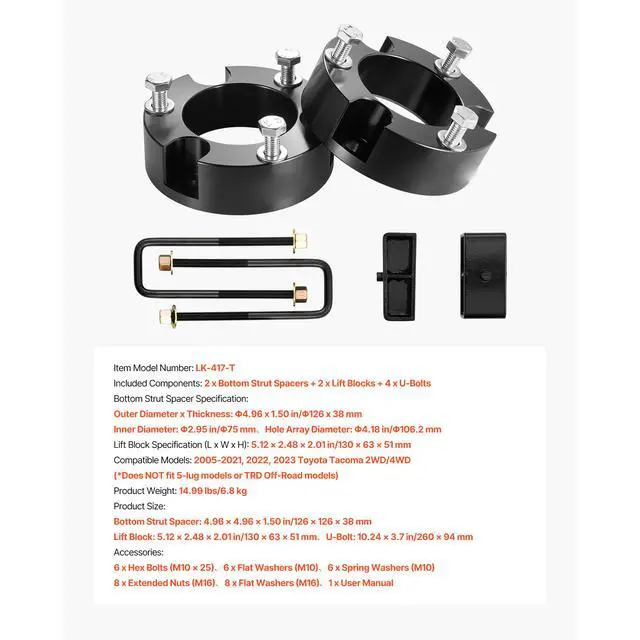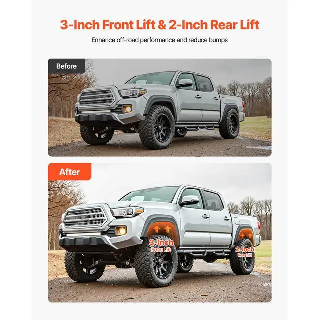 3 in Front 2 in Rear Leveling Lift Kit for 2005-2023 Toyota Tacoma 2WD/4WD Front & Rear Lift Upgrade OEM-Fit Compatibility Precision CNC Machining High-Strength Build Professional Installation Recommended Complete Kit Included Front