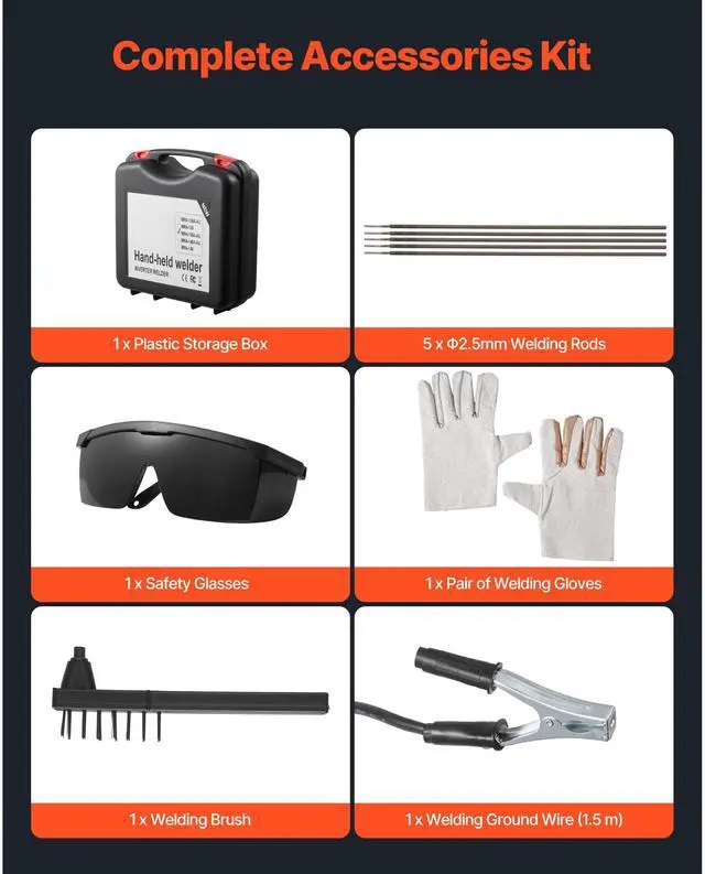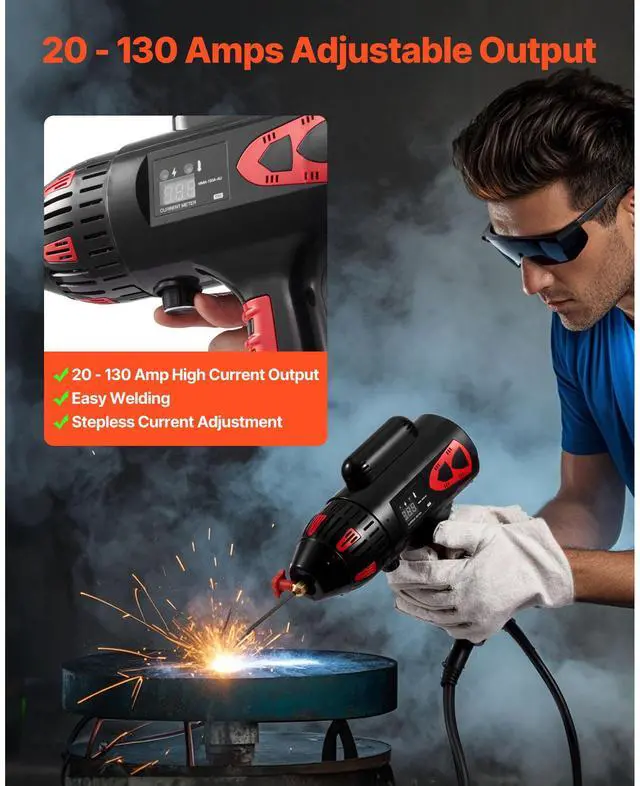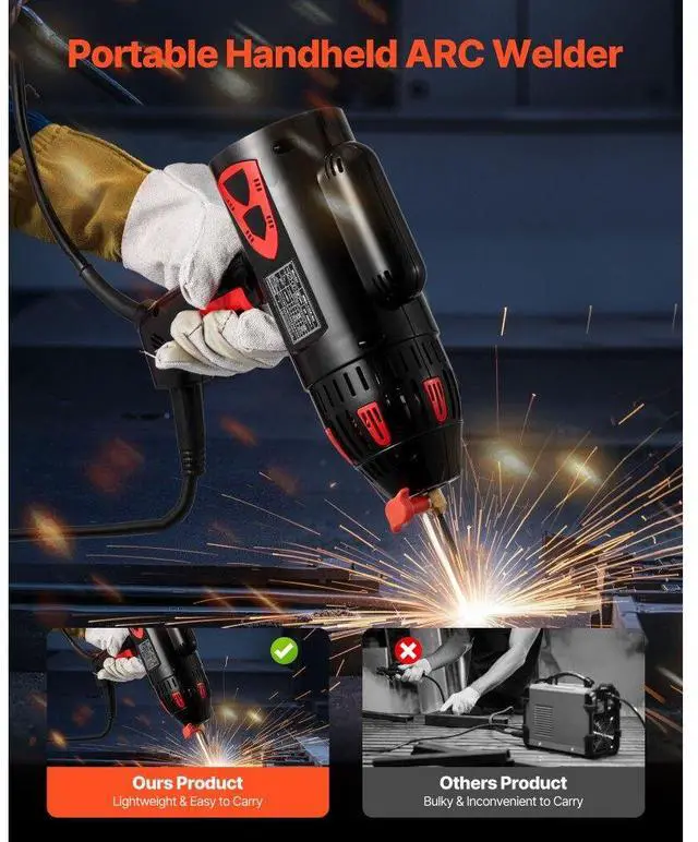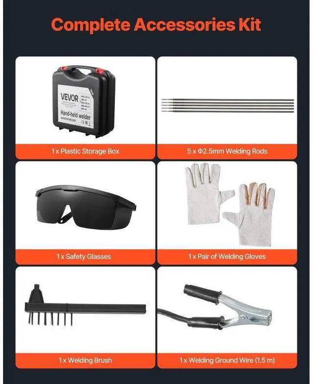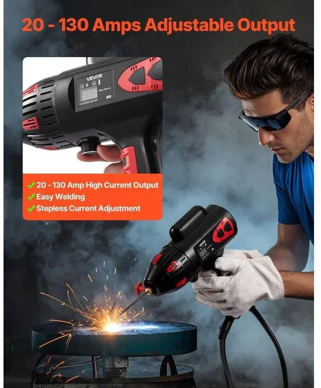 VEVOR Portable Handheld Welding Machine 20-130A with Stepless Current Adjustment High Current Output Easy Installation Safety Protection IGBT Inverter Technology Wide Applications Weld Anytime, Anywhere
