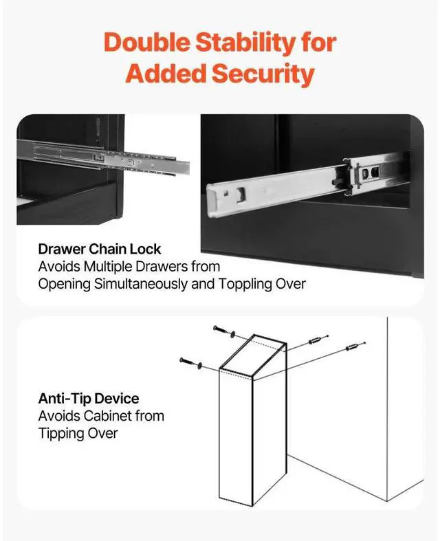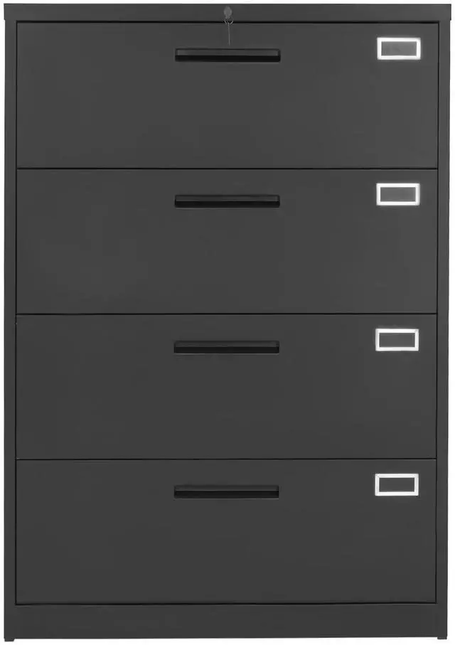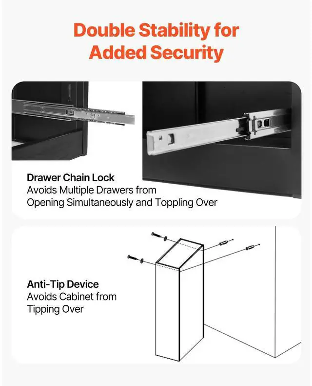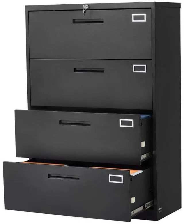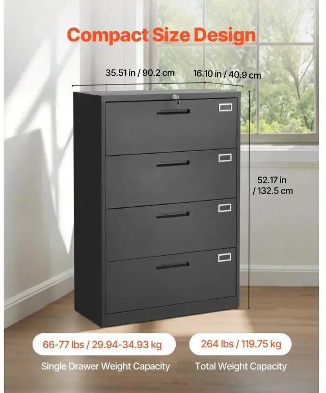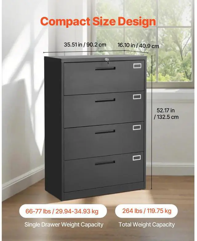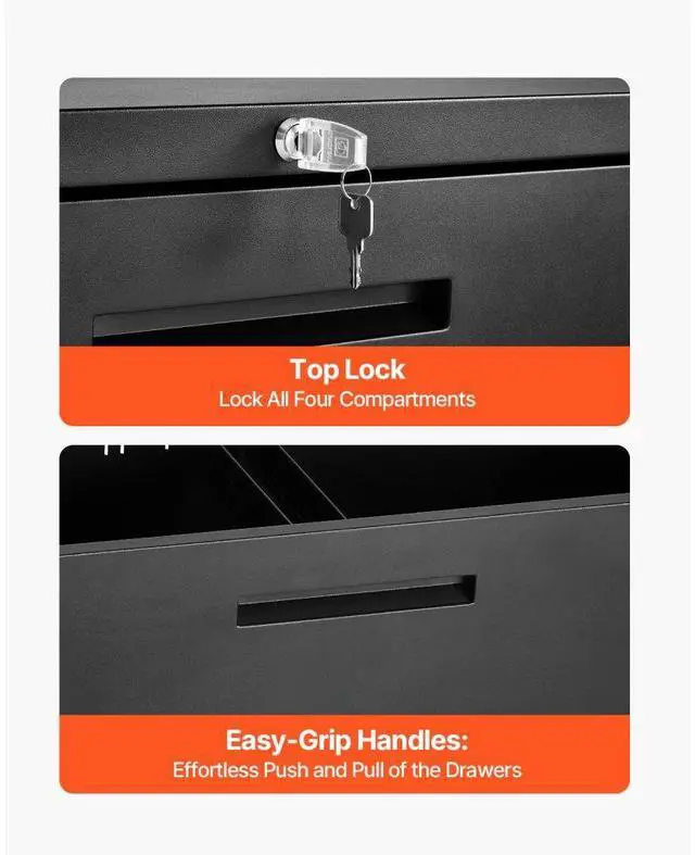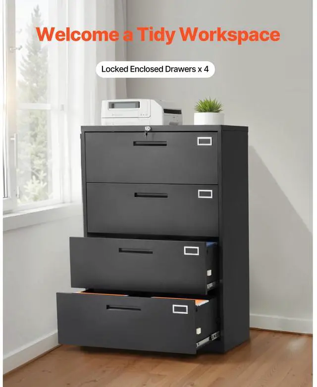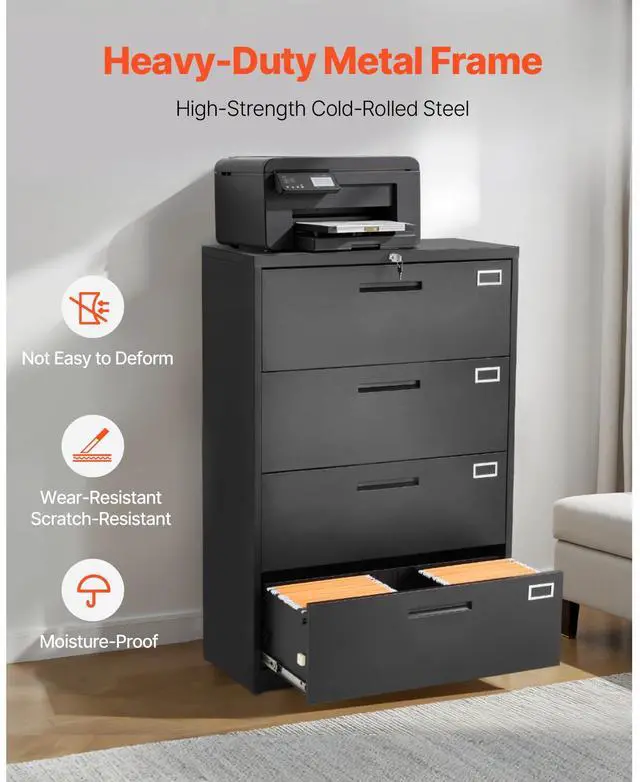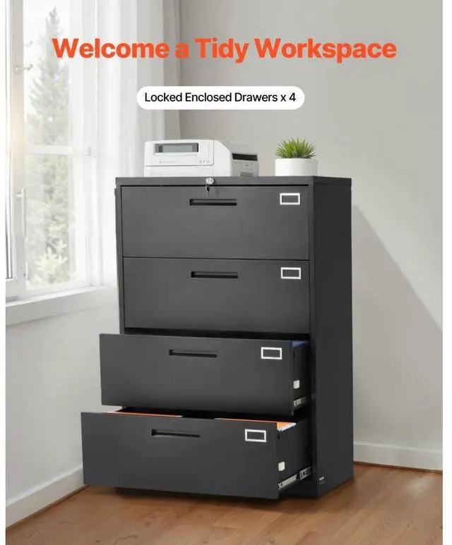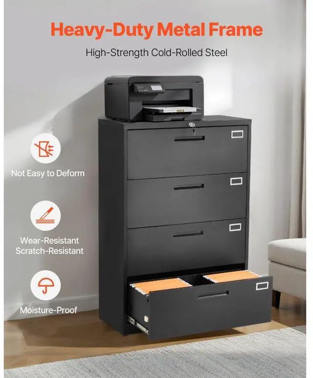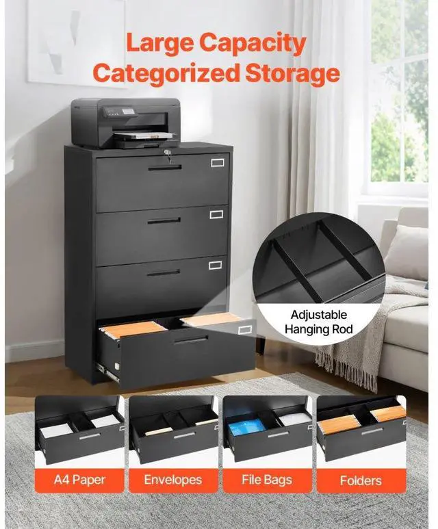 VEVOR 4 Drawers Metal File Cabinet, Vertical Filing Cabinet with Lock and Adjustable Hanging Rod, Tall Filing Storage Cabinets for Home and Office Fit Letter, A4, Legal Size File, Easy Assembly, Black Multifunctional Metal File Cabinet Spacious Storage Large Drawer Space Stable Structure Thoughtful