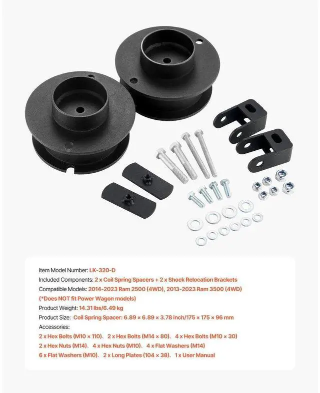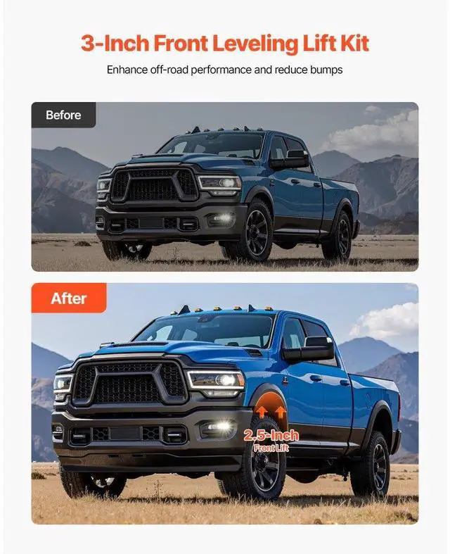 2.5 in Front Leveling Lift Kit for 2014-2023 Ram 2500 2013-2023 Ram 3500 Front Lift Upgrade OEM-Fit Compatibility Precision CNC Machining Professional Installation Recommended High-Strength Build Complete Kit Included Front